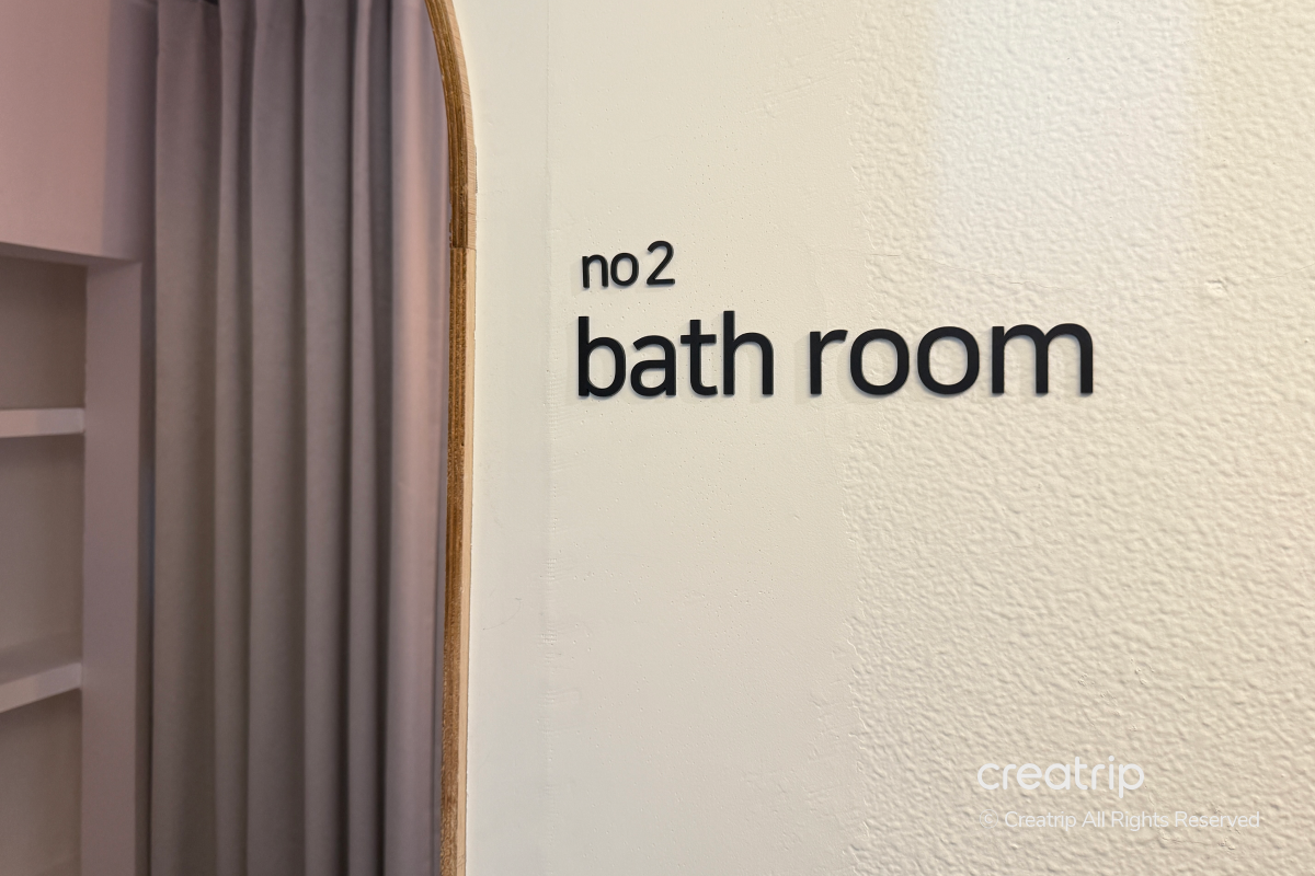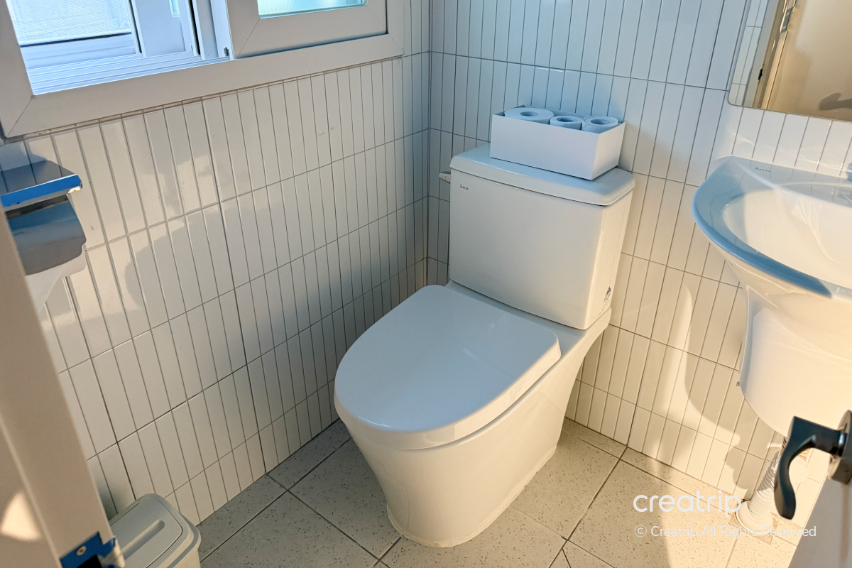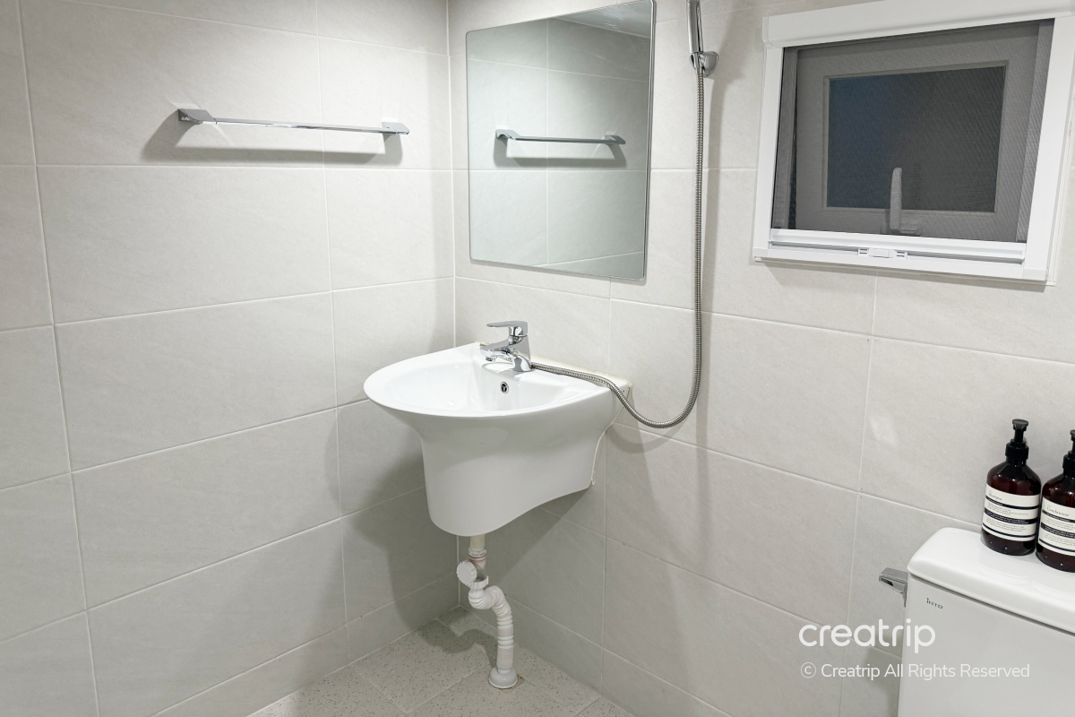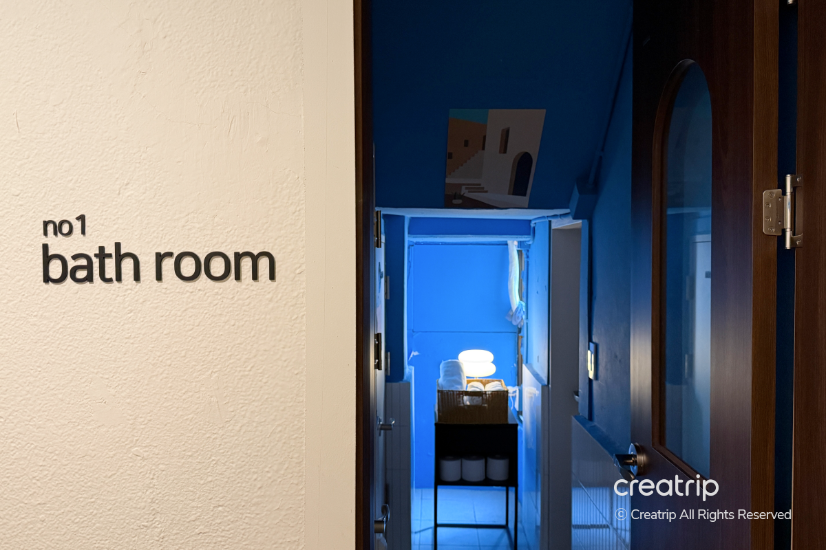 共用浴室空間不大,搭配柔和燈光,讓人能在舒適的氛圍下使用。