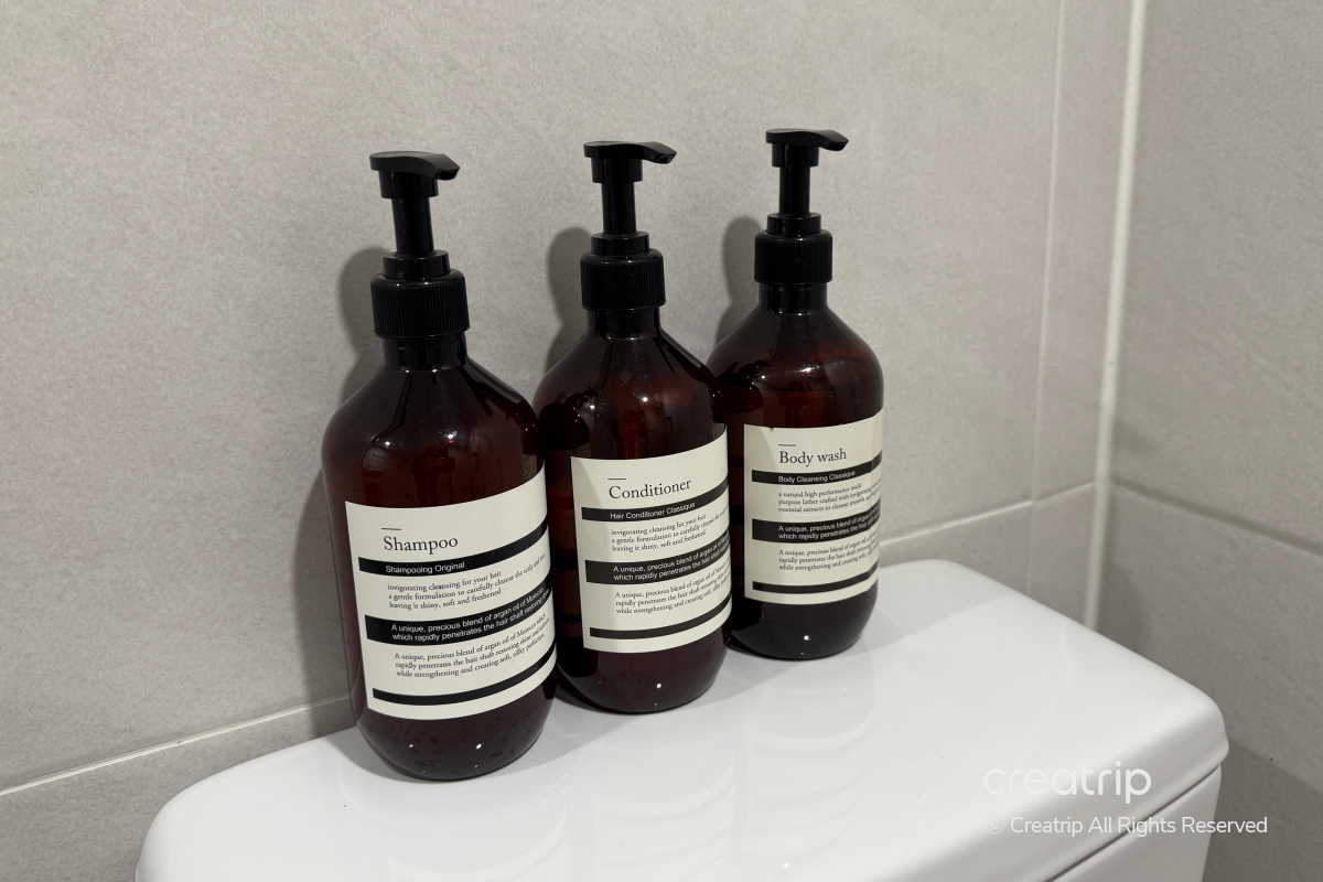 每間客房都備有洗髮精、護髮素、沐浴乳等基本盥洗用品,完全不需要另外準備就能使用。