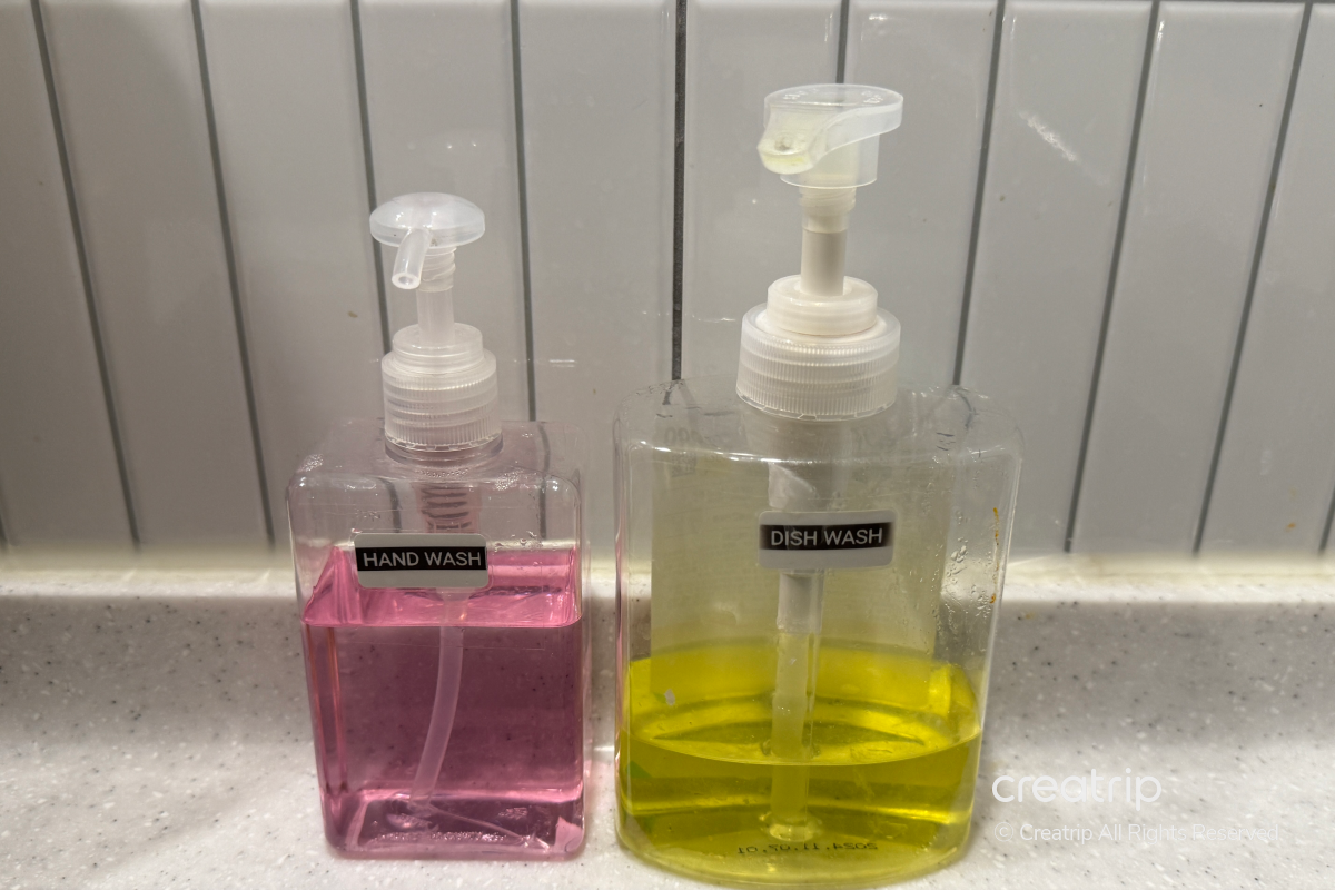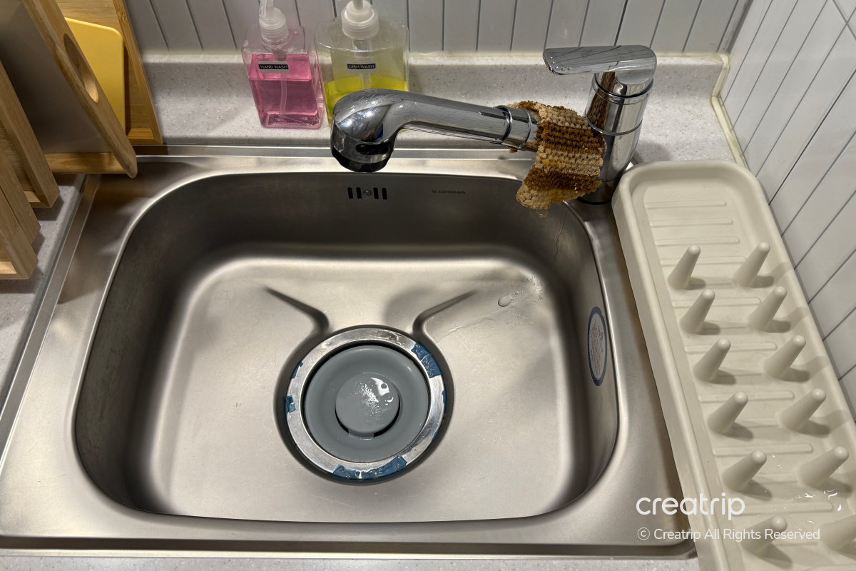 房間備有水槽,可以立即清洗使用過的餐具,並且提供廚房洗潔劑和洗手乳,使用起來很方便。