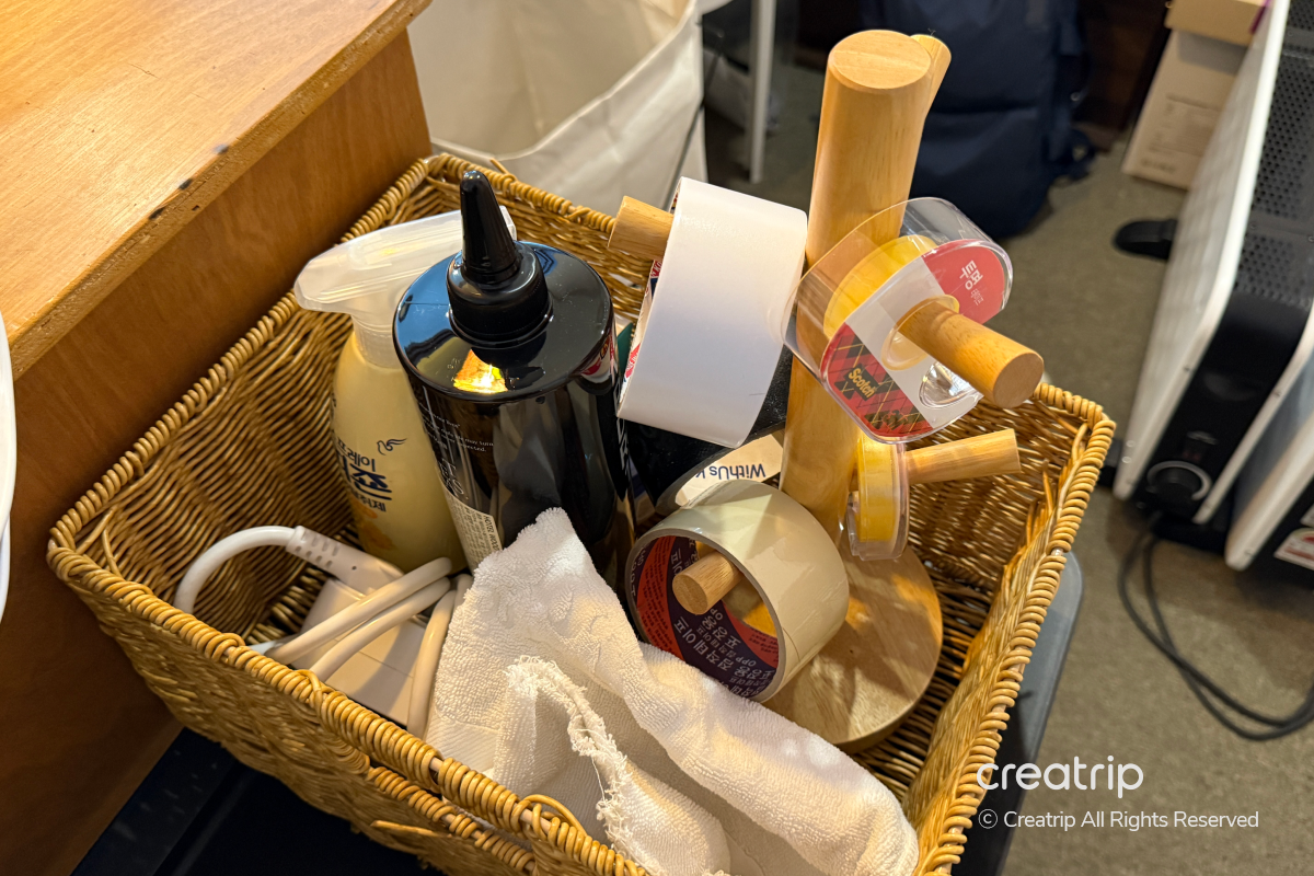 此外,也另外備有熨斗、膠帶等常用物品,整理衣物或重新整理行李時可以立即使用,不用另外準備,使用起來更方便。