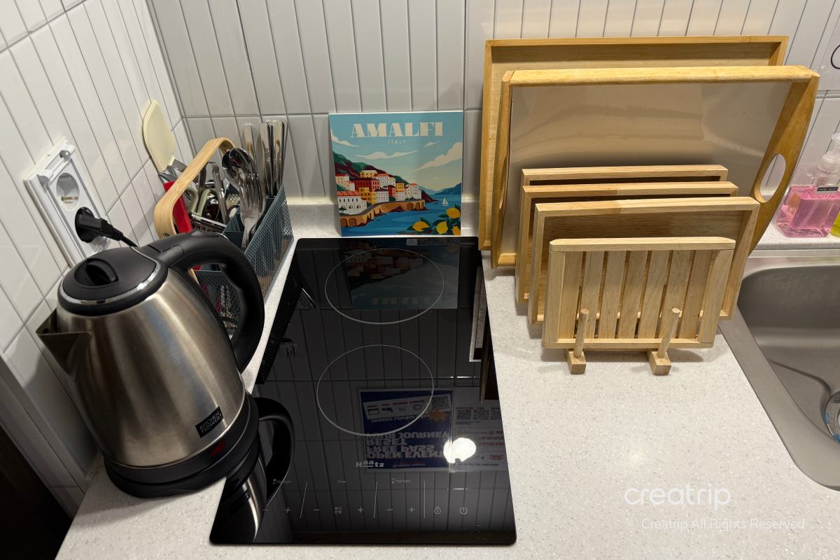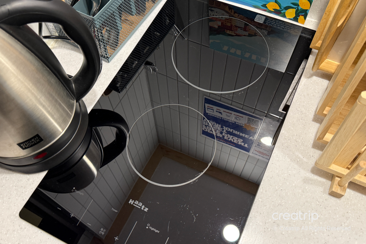 為了能簡單烹飪,房內備有電磁爐,並配有基本的料理用具與餐具,可以直接使用!