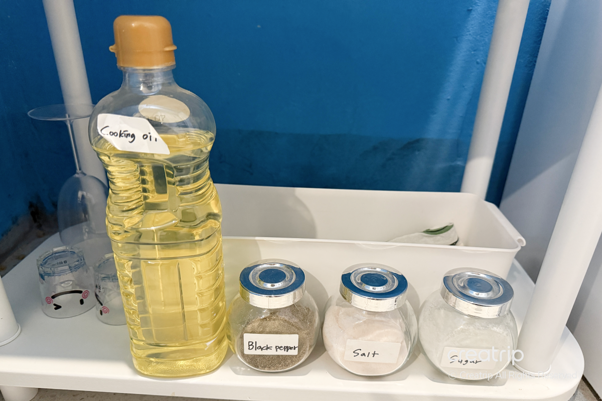 提供食用油、鹽、胡椒、砂糖等調味料,不需要另外自備調味料,也能輕鬆完成基本料理。