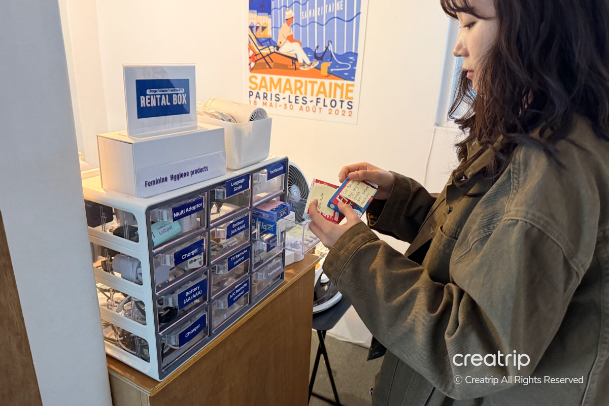 - 可透過租借箱免費借用充電器、常備藥、雨傘、女性用品等必要物品,旅行途中需要的物品能立刻借用,減少準備負擔。