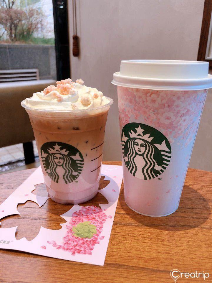 分別是拿鐵(체리블라썸 라떼),奶茶(아이스 체리블라썸 밀크티)以及星冰樂(체리블라썸 팝 크림 프라푸치노)