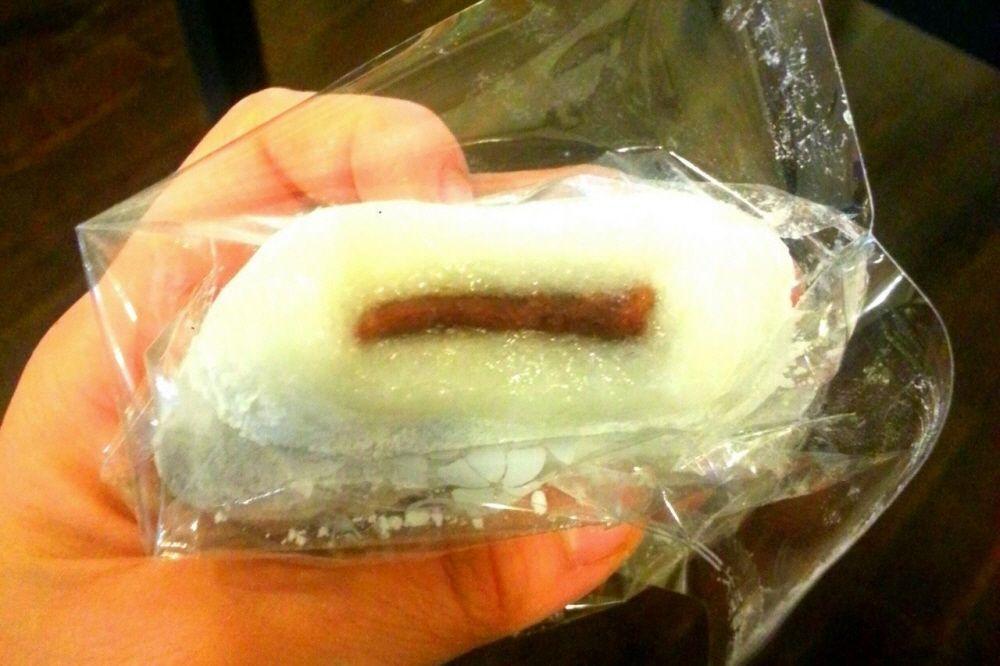 花月堂的麻糬糯米糕就像用松子做的年糕一樣,富有彈性口感的年糕裡有著綿密的紅豆泥
