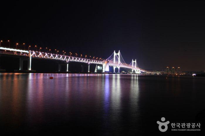 雖然早上的廣安大橋也非常漂亮,不過廣安大橋晚上的夜景也是美得非常有名。而且廣安里海水域場附近還有可以欣賞到大海的咖啡一條街及酒吧。