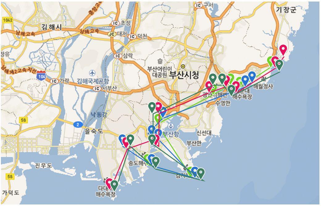- Day 1:太宗臺觀景台、松島海上纜車、廣安里海水浴場、The Bay 101
