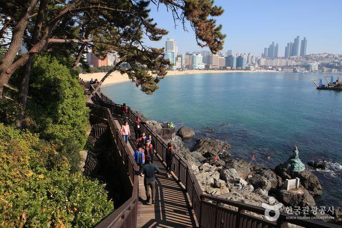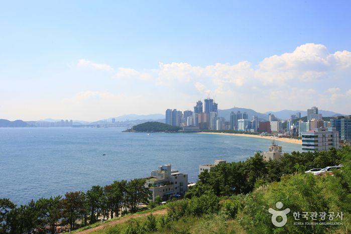 迎月路是釜山美麗的兜風景點之一。這裡有著蔚藍的大海、白沙灘、東柏林及松樹林,互相交織成的風景十分美麗。當然一邊散步一邊欣賞海雲台的海景也是一件非常幸福的事情。
