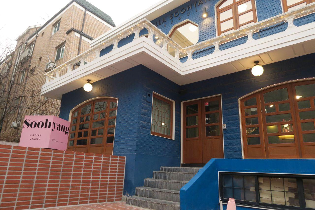 ——Villa SooHyang秀香Villa SooHyang秀香主要是販售蠟燭跟擴香瓶,而且它位於林蔭大道安靜的小巷中,是一個擁有非常美麗外觀的店家。現在就跟小編一起前往用藍色磚塊改造成的SooHyang秀香吧。