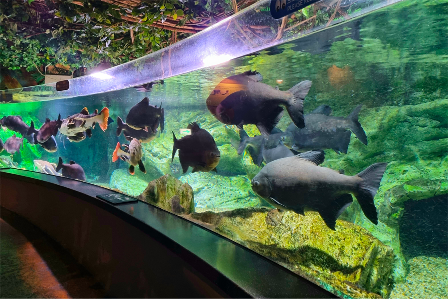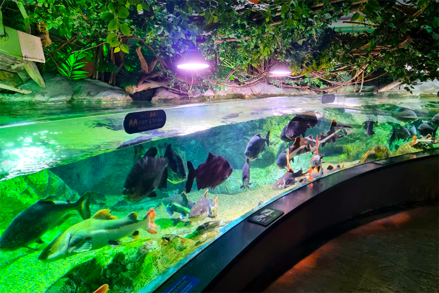 繼續往下走,就會抵達SEA LIFE COEX水族館的「亞馬遜世界」,平時看不到的稀有魚類讓小編看得目瞪口呆,而且這裡的內部裝潢非常氣派,動物們自在地穿梭彷彿叢林的河流中。