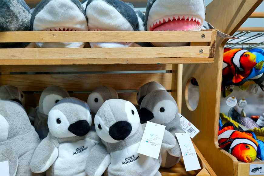 準備離開SEA LIFE COEX水族館並乘上手扶梯後,會看見販售各式各樣商品的紀念品店,有玩偶、吊飾和小文具,作為這趟行程最後的一步,是否也該買個小禮物,紀念在COEX的美好回憶呢?