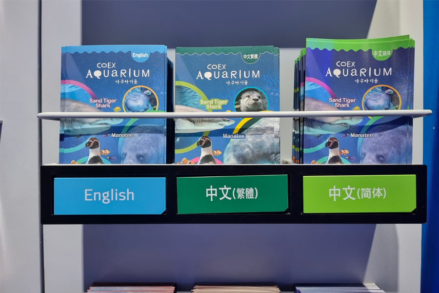 搭乘手扶梯上來後,可以領取各國語言的手冊,裡頭有SEA LIFE COEX水族館的地圖、表演與餵食秀的時間等,大家可以確定好每個時段後,選擇想看的表演。