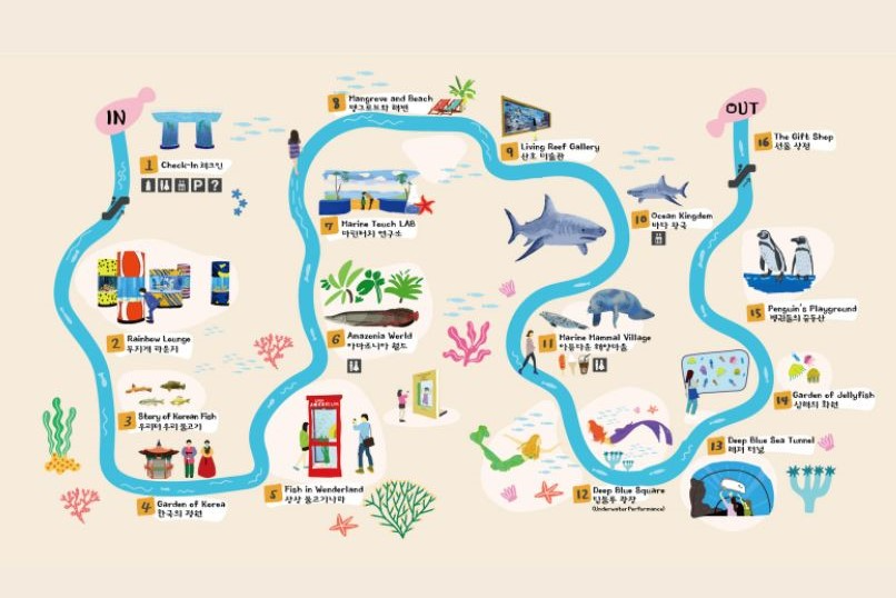 - 小撇步:首爾地鐵2號線三成站5號、6號出口方向,在COEX內部找尋「아쿠아리움(Aquarium)」的指標。