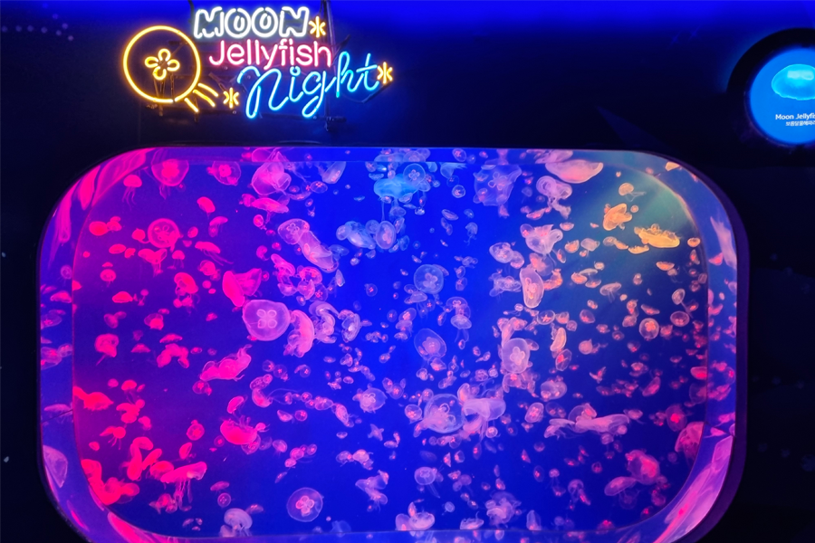 SEA LIFE COEX「水母花園」裡,可以看到不同品種的水母在這裡共舞,搭配七彩燈光效果,看起來更加夢幻。