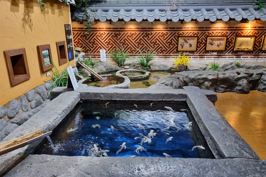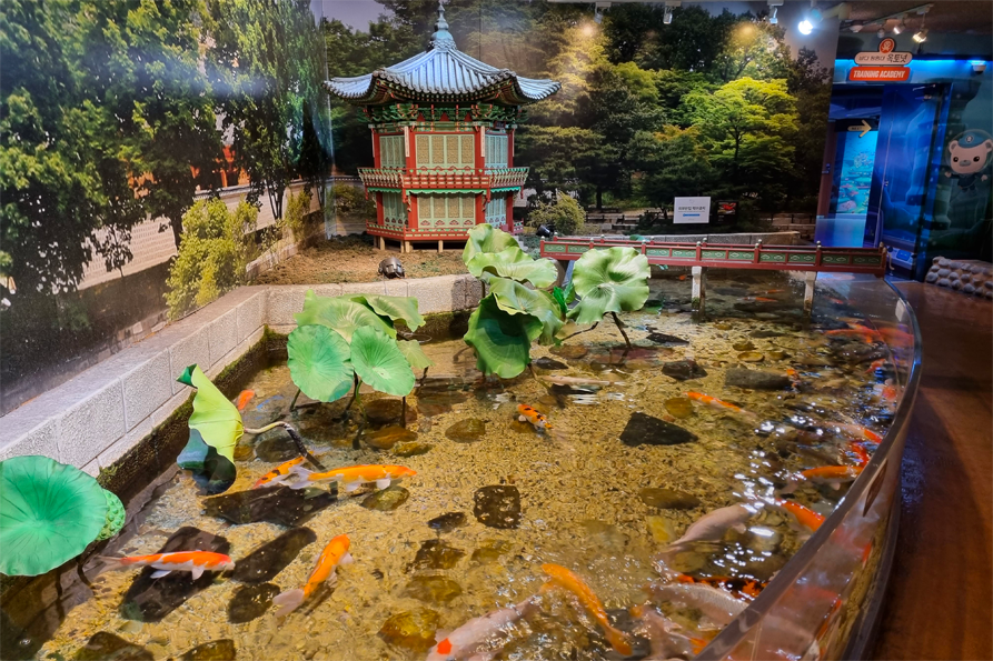 讓小編印象最深刻的,是這個古色古香的韓國庭園,以韓屋風格打造的水池,可以觀賞魚兒們悠遊自在的可愛樣子。
