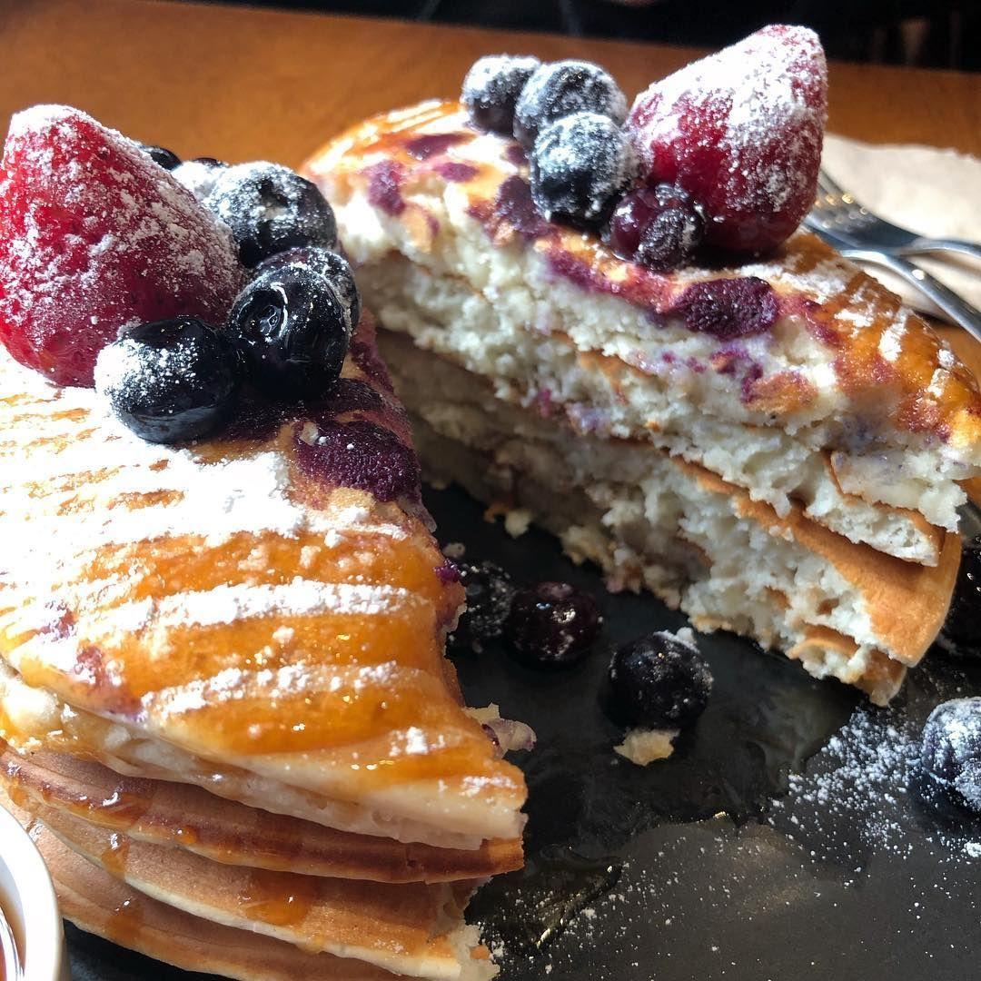 這裡可以品嘗到鬆餅,有著簡單卻不失美麗的外觀,熱騰騰的,非常美味。鬆餅上面有著藍莓跟草莓,另外還撒上了糖粉跟糖漿,吃起來甜蜜蜜的。粉色莓果這款飲品其實就是草莓冰沙,顏色是不是非常漂亮呢?
