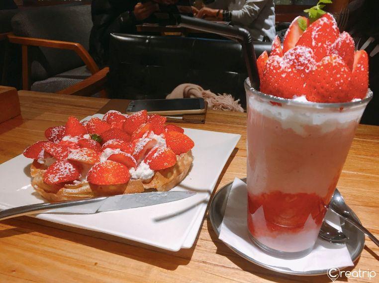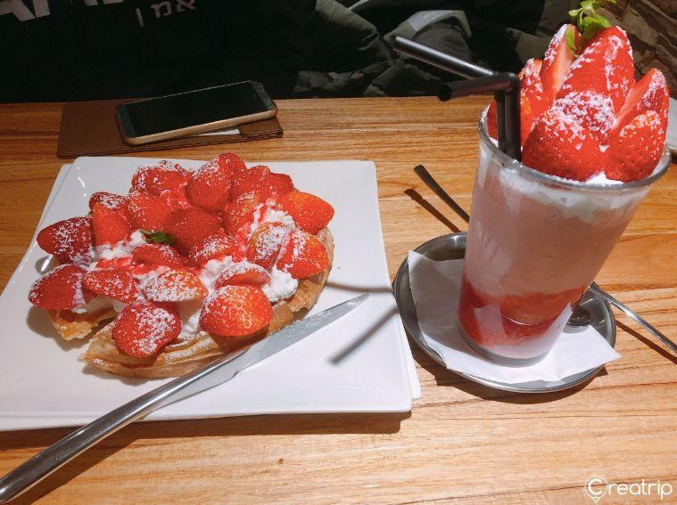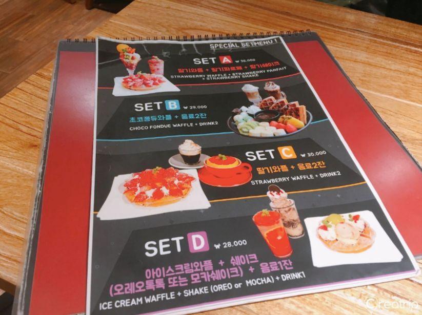 • 餐點:草莓鬆餅(스트로베리와플) ₩16,500、草莓冰沙(딸기스무디) ₩5,500