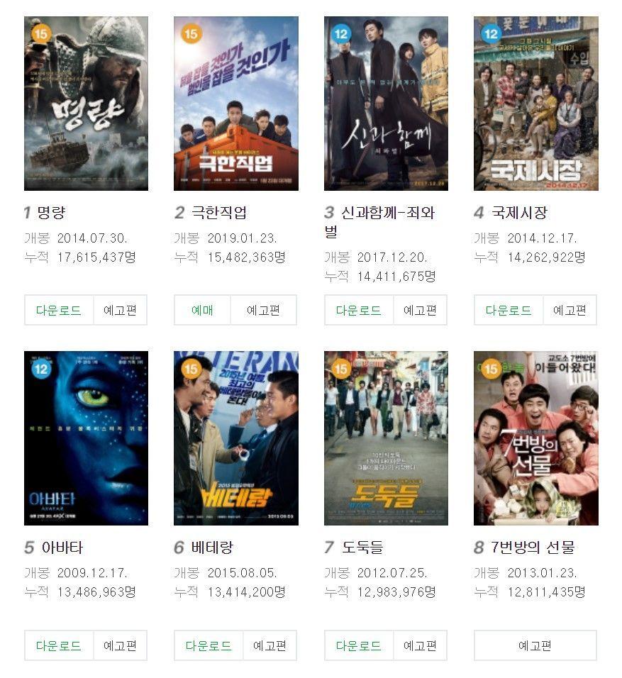 從排行榜裡面可以看出,韓國人熱愛動作片!動作片就佔有三部,而關於韓國歷史片則是有兩部,至於外語電影只有《阿凡達》榜上有名。如果排行榜上有沒看過的電影,推薦可以去看看喔~都是非常值得一看的電影。