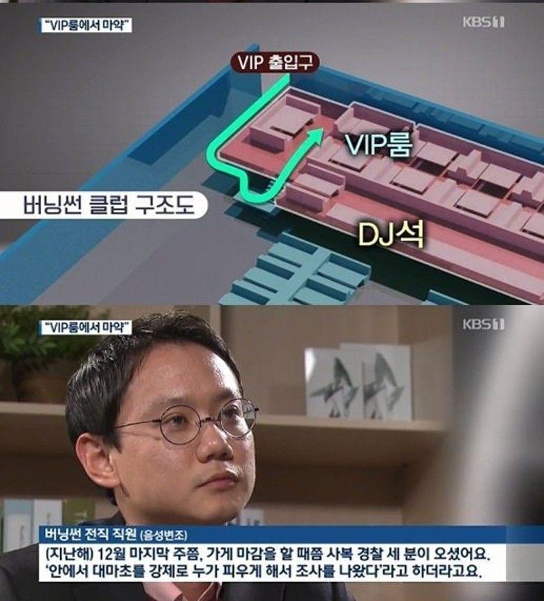 Burning Sun前員工爆料,VIP室裡會提供客人吸毒,在VIP室裡吸毒是大家都知道的秘密,並透漏有警方於12月時登門調查毒品事件。