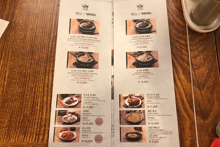 而土俗村的菜單相當精緻,上頭除了韓文,還有中文、日文、英文等標示,點餐起來一點困難都沒有,店家也很有接待外國客人的經驗。