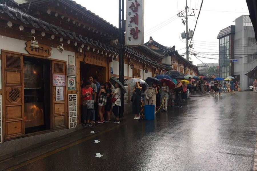 土俗村蔘雞湯位於景福宮左側的西村,是間非常有名的美食,而且有名程度就是無論季節、晴雨,用餐時段都是人潮滿滿,不少觀光客都抱著必吃的名號前來。