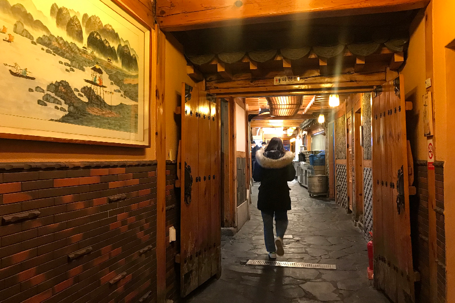 穿過彷彿大宅院一般的店內空間,有種穿梭時空的感覺,質感非常好。而且土俗村也重新整理過店面,多了不少桌椅位置,吃起來更加方便。但如果想要像之前那樣坐在地上,以傳統的座席用餐,就要去另一個區域入座。