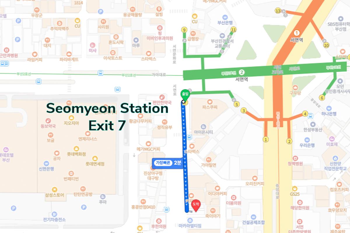 - 小撇步:釜山地鐵1、2號線西面站(서면역)7號出口出來後直走。