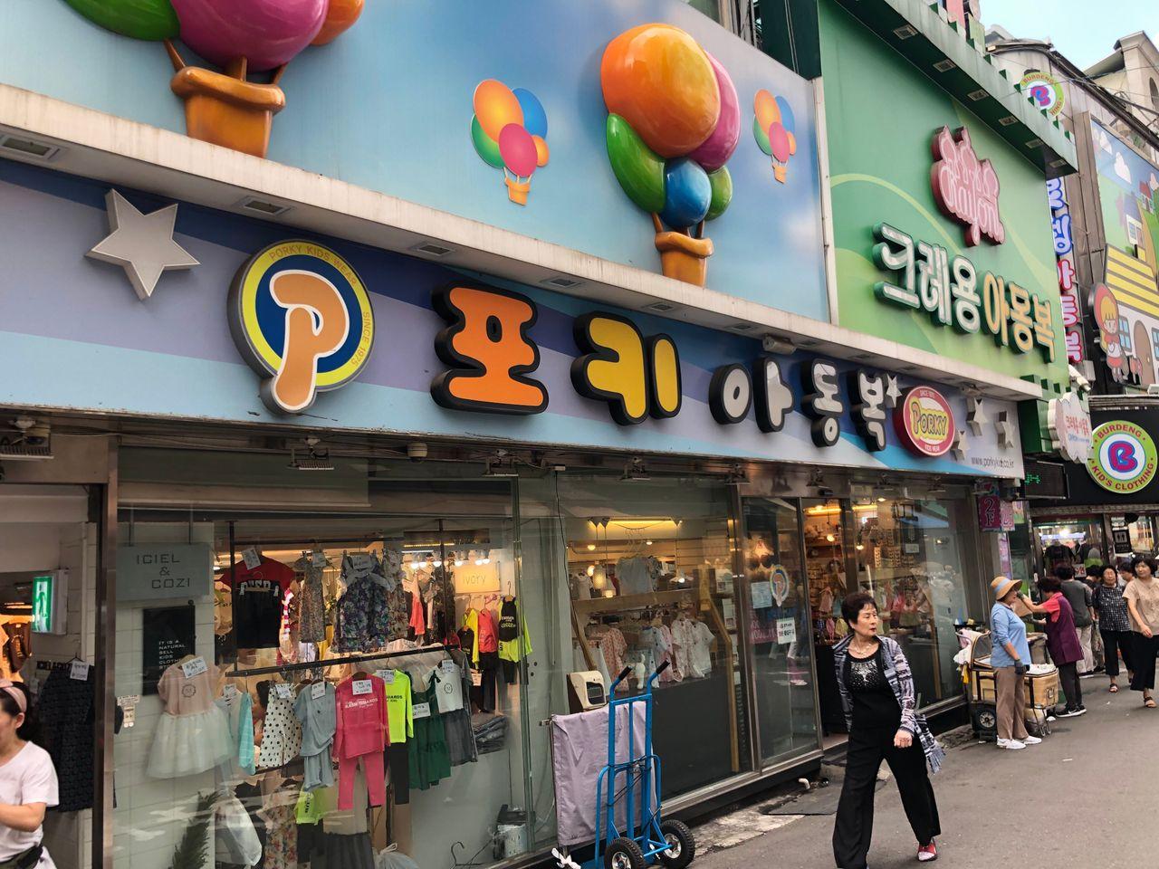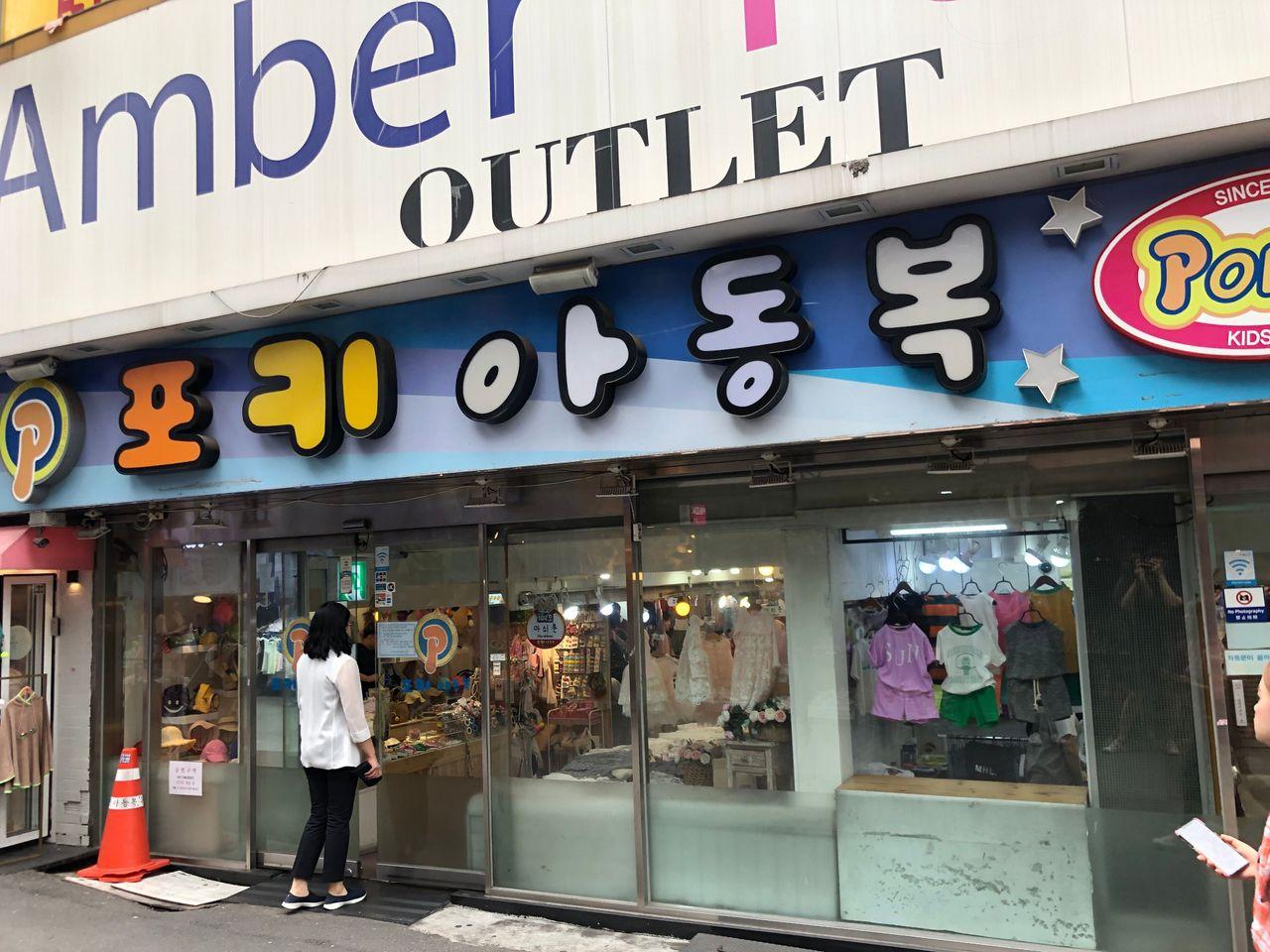 在剛剛說的南大門童裝街這,逛到中段部分,會看到左手邊有這種大型的商店:포키아동복(Porky兒童服商場)。選擇更多,像是兒童版的東大門商場。