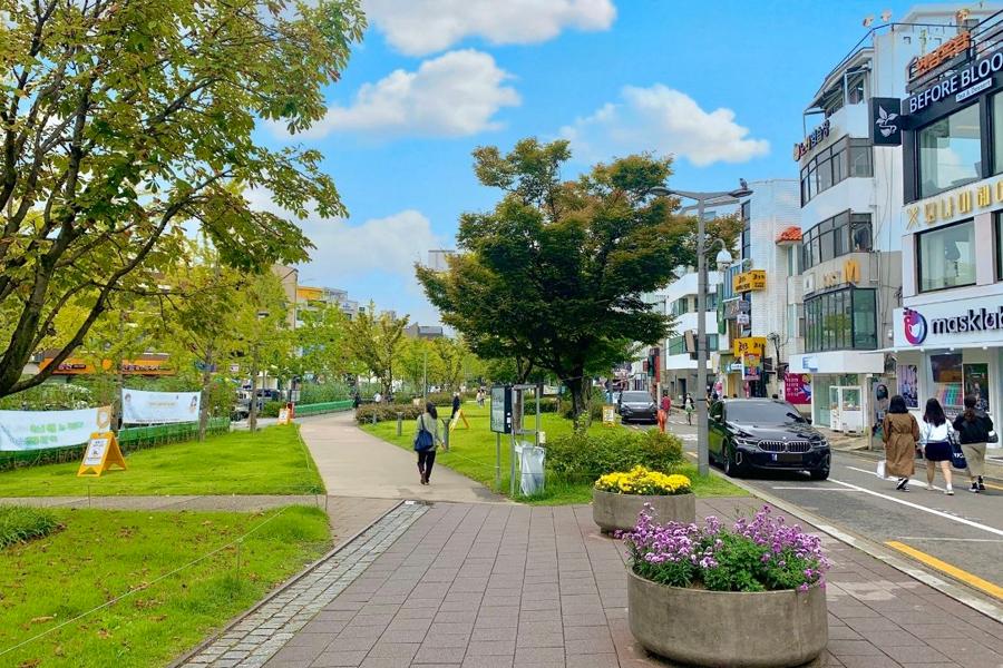 從弘大入口站出來,就會看到京義線林蔭道公園。這裡原是廢棄鐵路,後來改造成為弘大一帶最美麗的公園路。在疫情之前,許多年輕人都會聚集在這野餐、聊天,而這裡直到夜晚,也是人聲鼎沸,十分熱鬧。