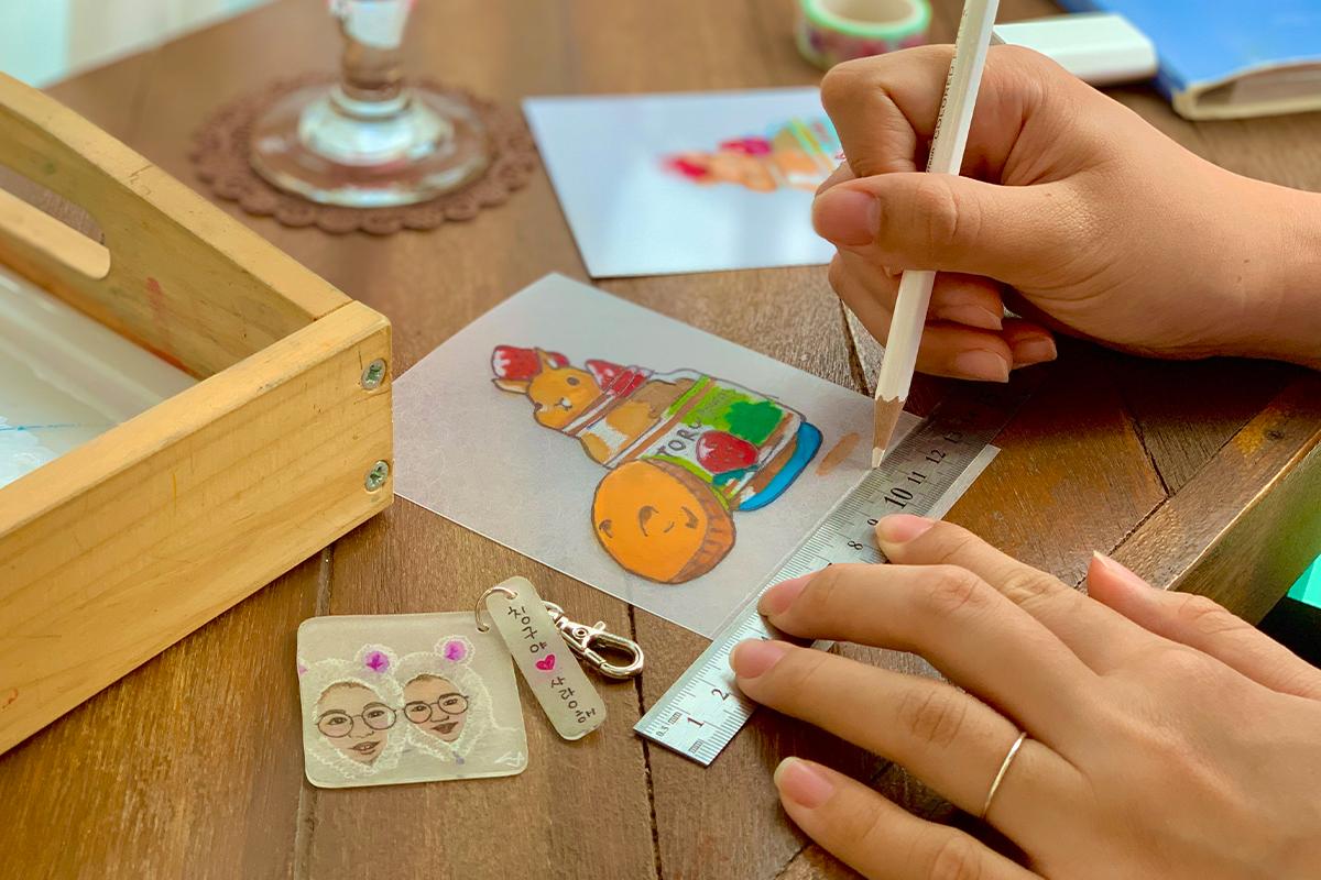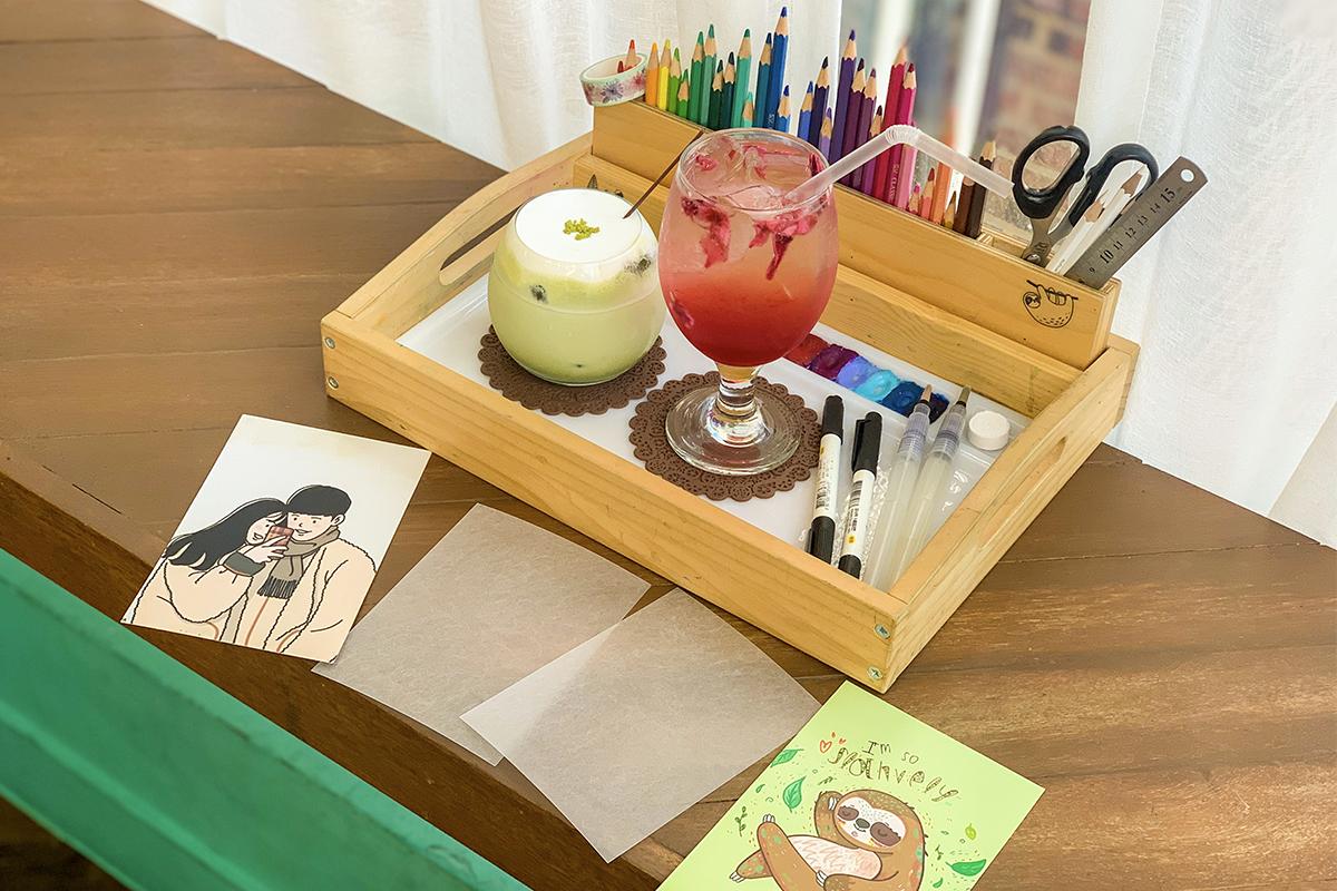 飲品部分還算可以,小編點了玫瑰ADE(장미에이트)與奶油抹茶(크림말차),價格分別是₩6,000與₩6,500,味道與價錢還可以;鑰匙圈手作可以參考店家提供的照片,或是自己發揮創意去做,是個不錯的體驗,推薦大家來弘大延南洞時可以試試看。
