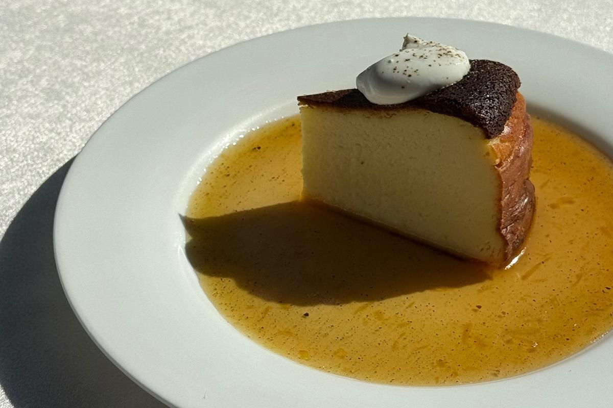 充滿伯爵茶香的巴斯克起司蛋糕,搭配酸奶油享用,並附上帶有微辣黑胡椒香氣的楓糖漿,在柔滑甜香中感受細膩辛香的餘韻。