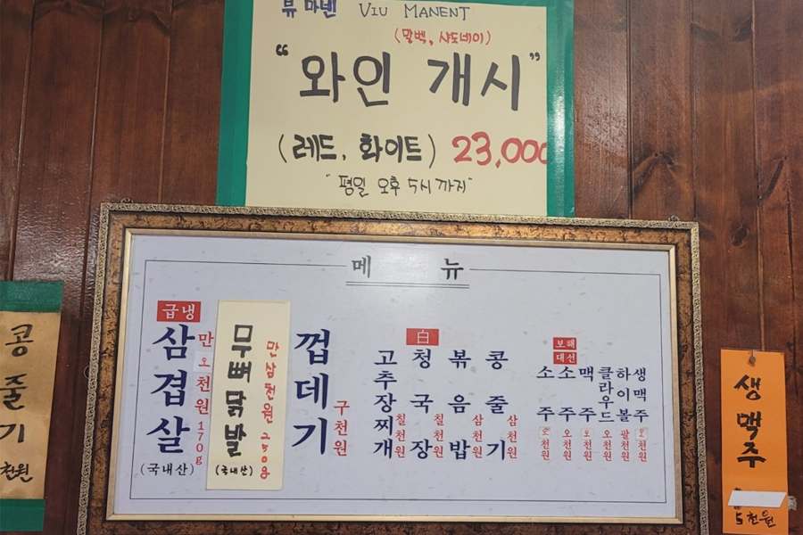 價格上不算太便宜,1人份(170g)三層肉就要₩16,000,豬皮則是₩10,000。但究竟望遠美食「行進」吸引人的點在哪呢?