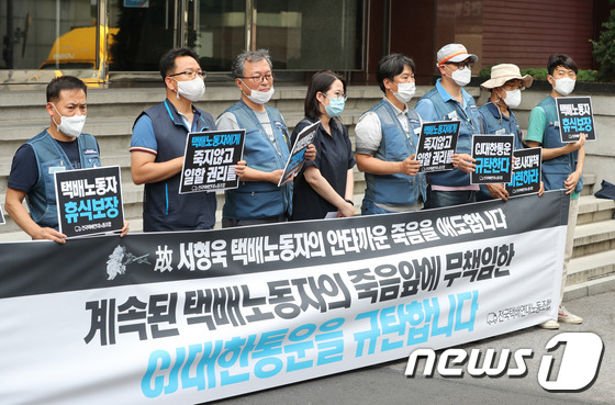 昨日(08日),快遞工會在首爾CJ大汗運通總公司前舉辦記者會,表示在本月04日當天,47歲的司機徐某因勞累過度而死亡。他沒有舊疾,但最近因快遞量增加而感到疲勞,最終因心肌梗塞過世。