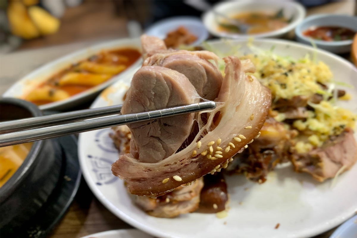 你愛吃韓國豬腳嗎?首爾「豬腳一條街」俗又大碗的豬腳盤,配血腸年糕吃到飽