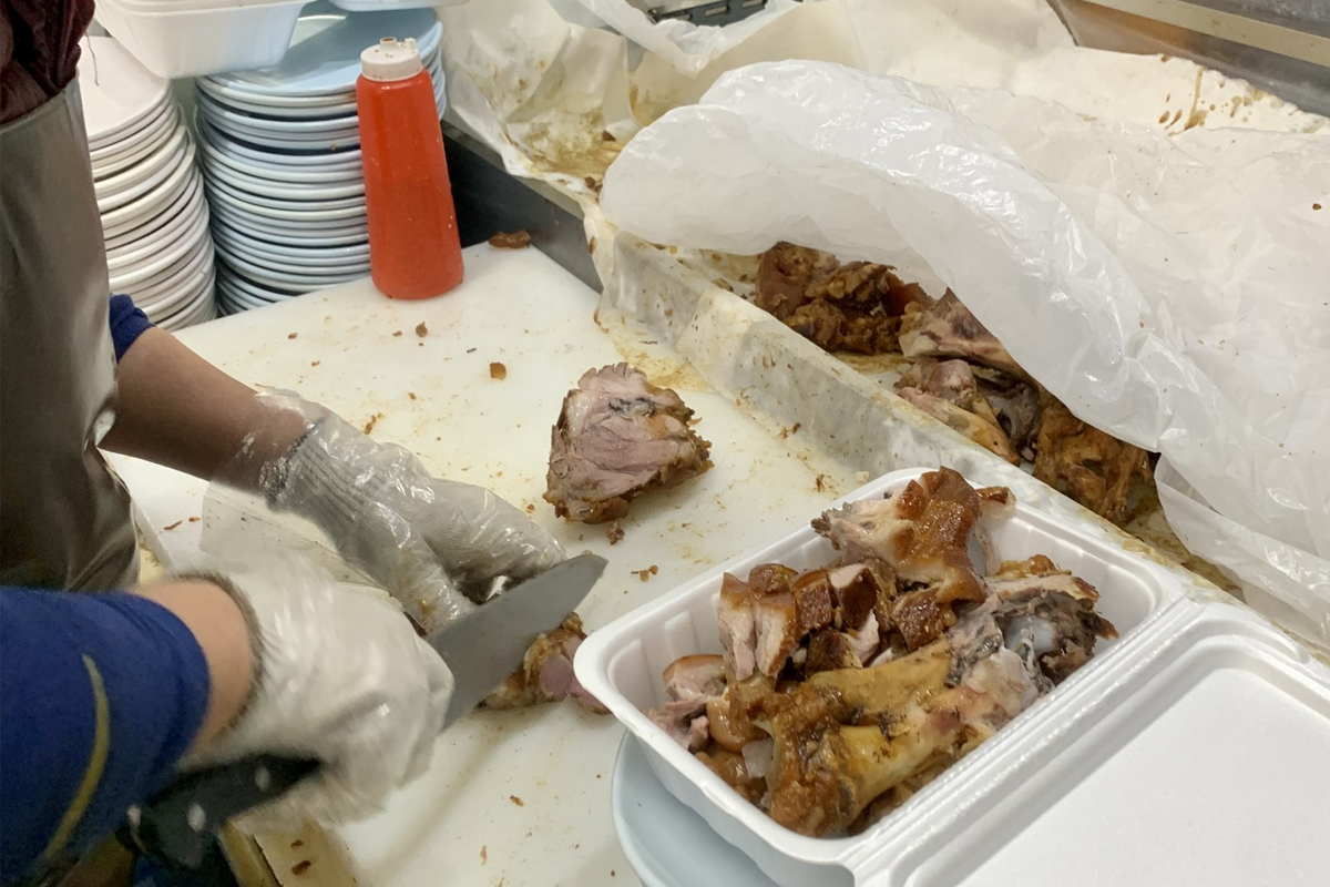 孔德豬腳一條街上,切割豬腳的擺設讓飢餓的食客垂涎欲滴