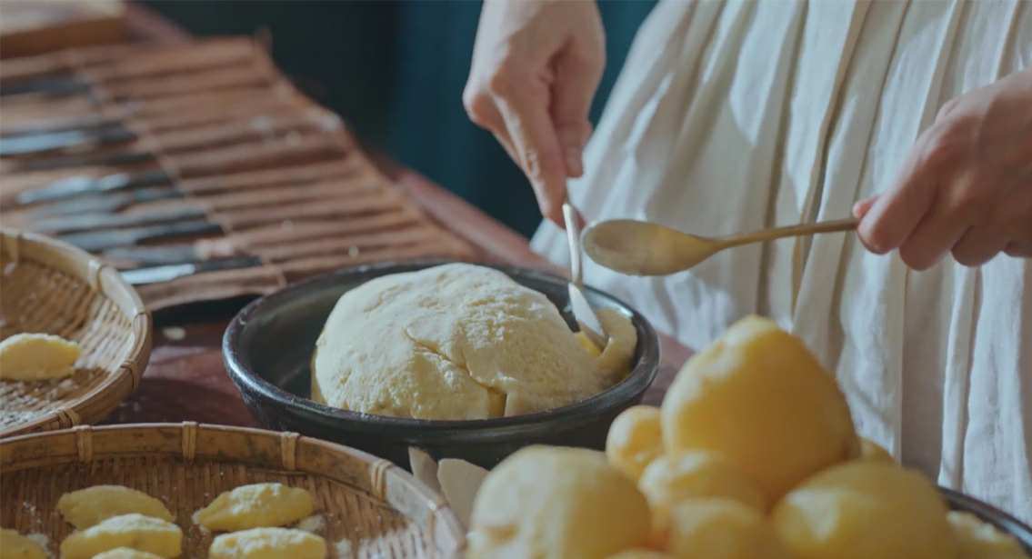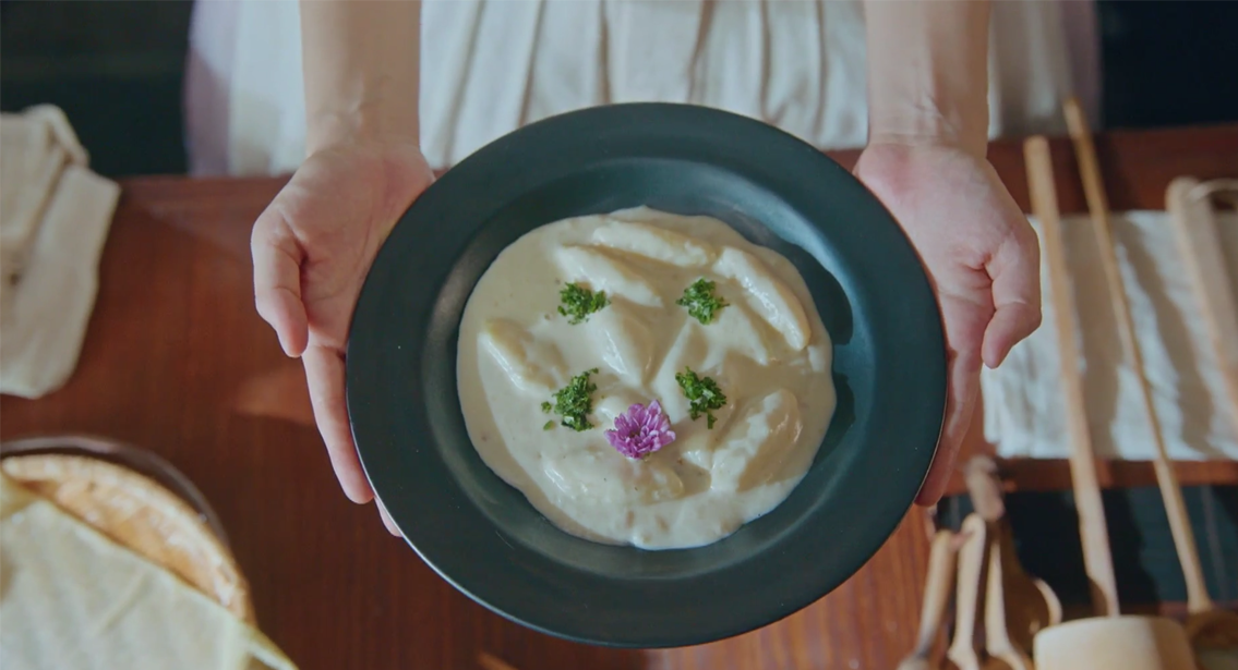 同樣出現於《哲仁王后》中,並讓人印象深刻的料理就是這道讓宮中小牛斷食(?)才換來的牛奶麵疙瘩。雖然看起來是普通的麵疙瘩,但麵條是用馬鈴薯做成的,想必吃起來相當鬆軟、美味。