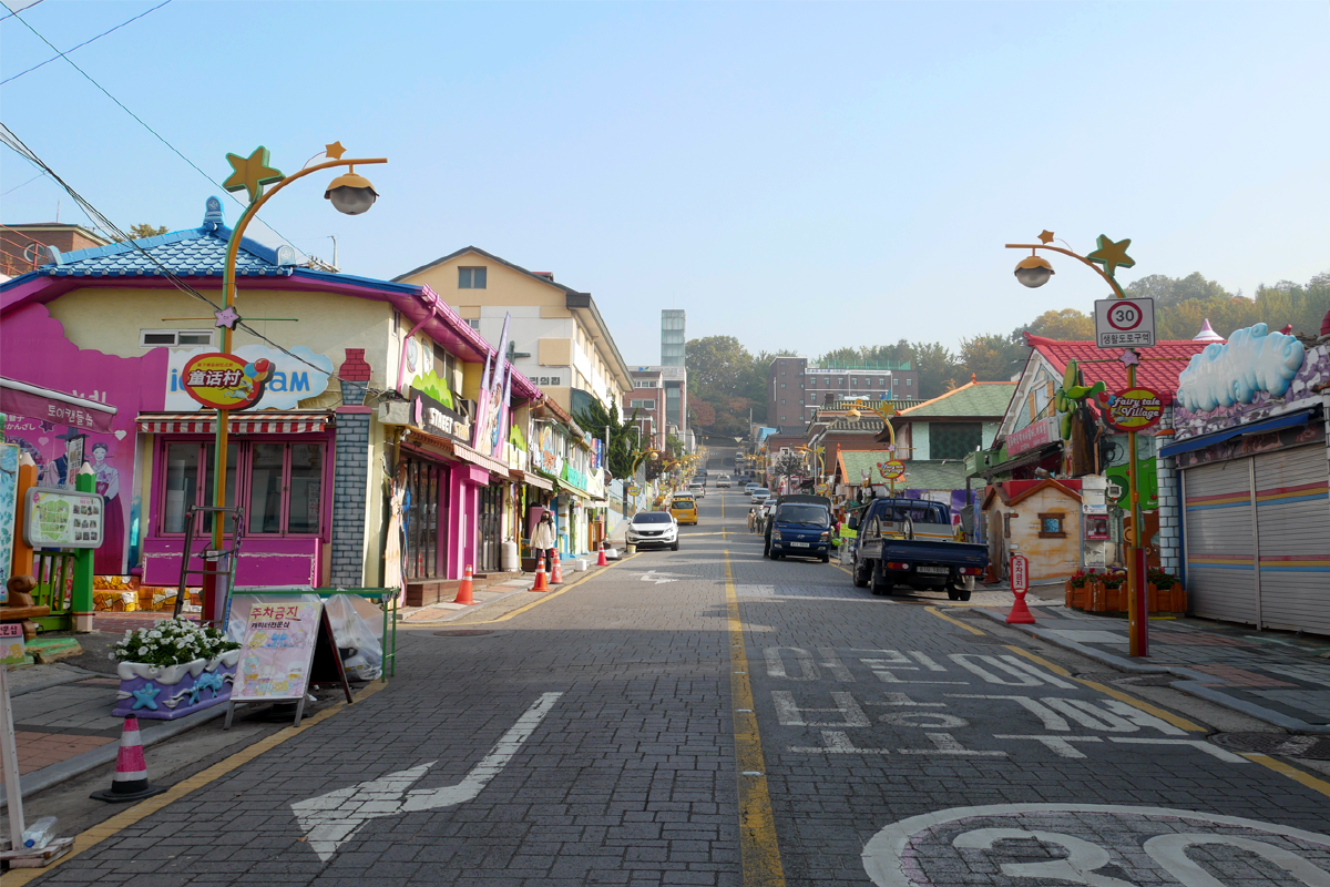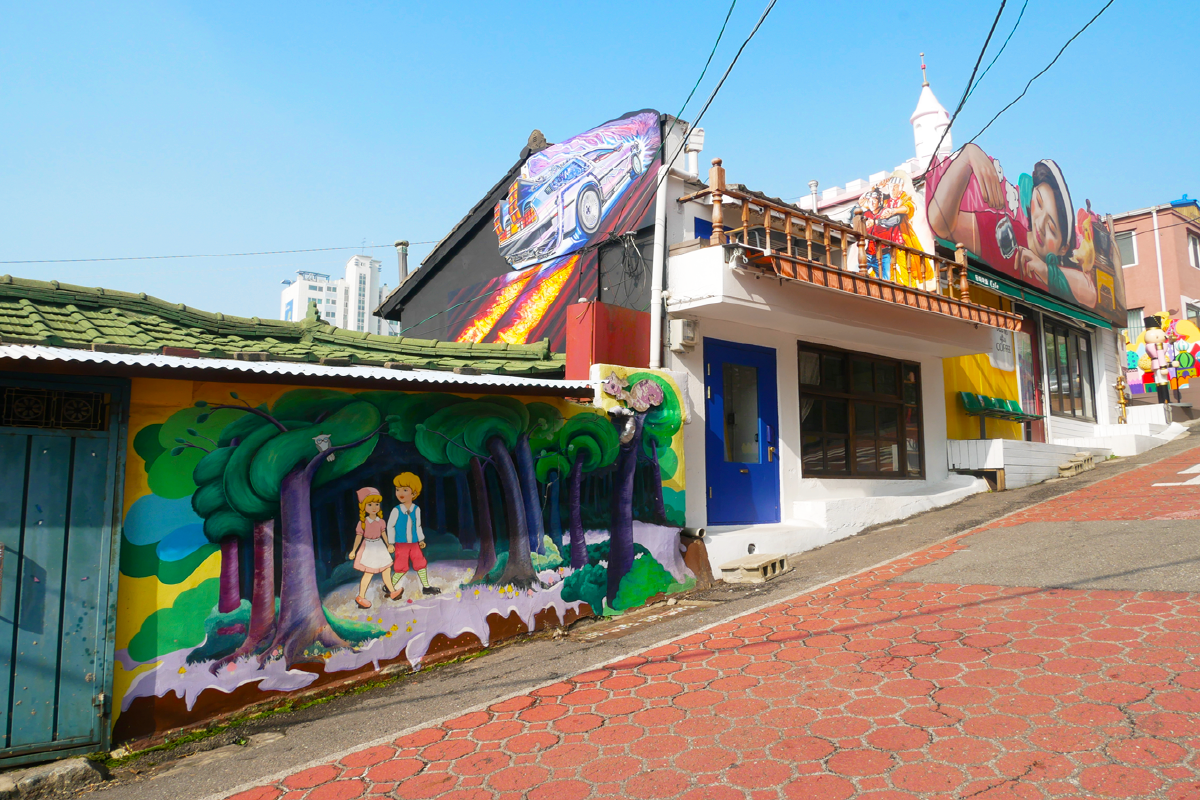Das Songwoldong Märchendorf ist eine Touristenattraktion in Incheon, gefüllt mit straßen im Märchenthema und niedlichen Wandmalereien.