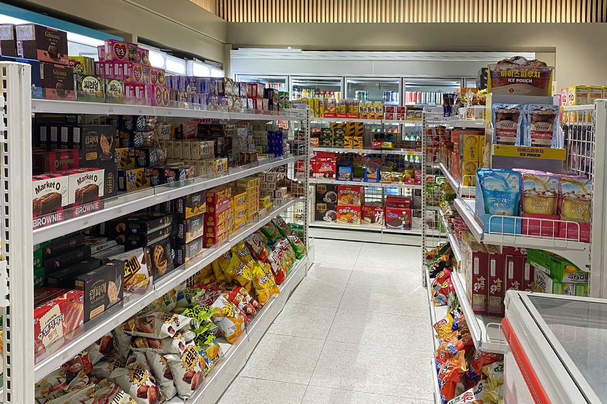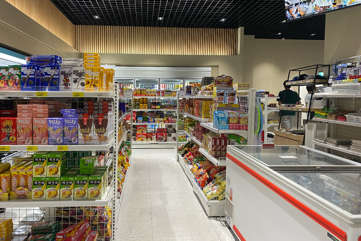 Untergeschoss 1 Soteulsaem(솟을샘) ist ein Ort mit unbemannten Convenience-Stores und Cafés, an dem Sie hinuntergehen und Ihren Zucker auffüllen können, während Sie studieren.