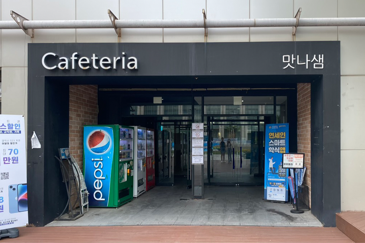 Es gibt 3 Studentencafeterias im Inneren, nämlich 맛나샘 im ersten Stock (technisch gesehen ist es das Untergeschoss), 고를샘 im zweiten Stock und 부를샘.