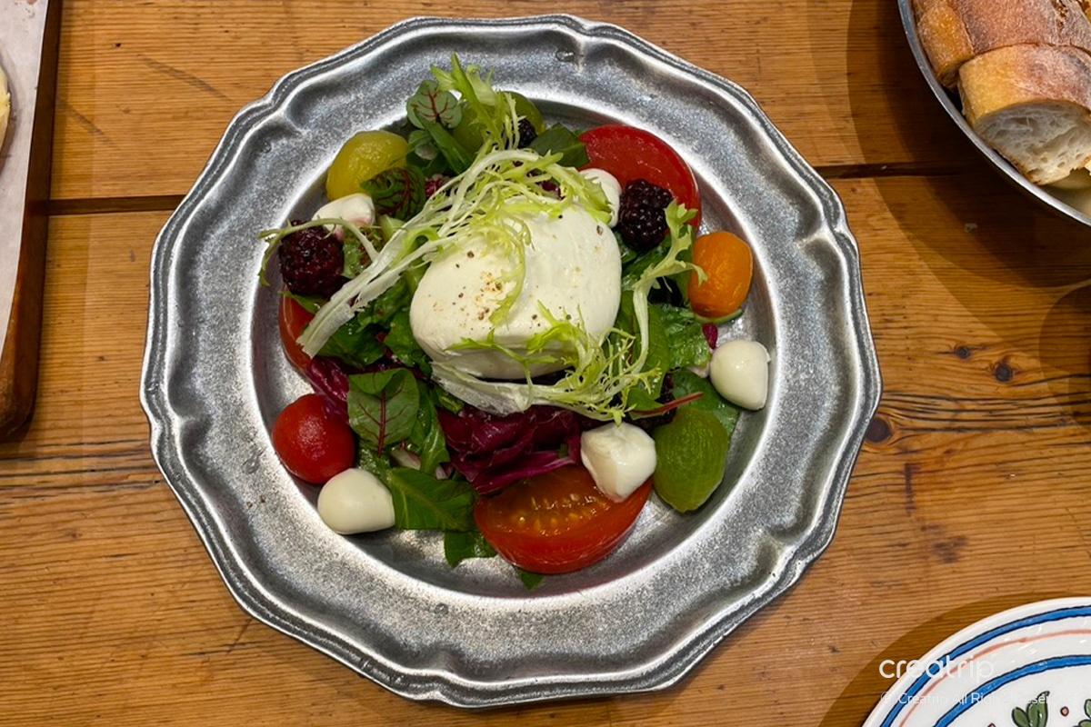 Genießen Sie die Frische des Burrata & Bocconcini Salats, der eine Mischung aus Burrata- und Bocconcini-Käse, Tomaten und einer würzigen Zitronensoße bietet. Es ist eine perfekte Wahl als Vorspeise vor der Mahlzeit.