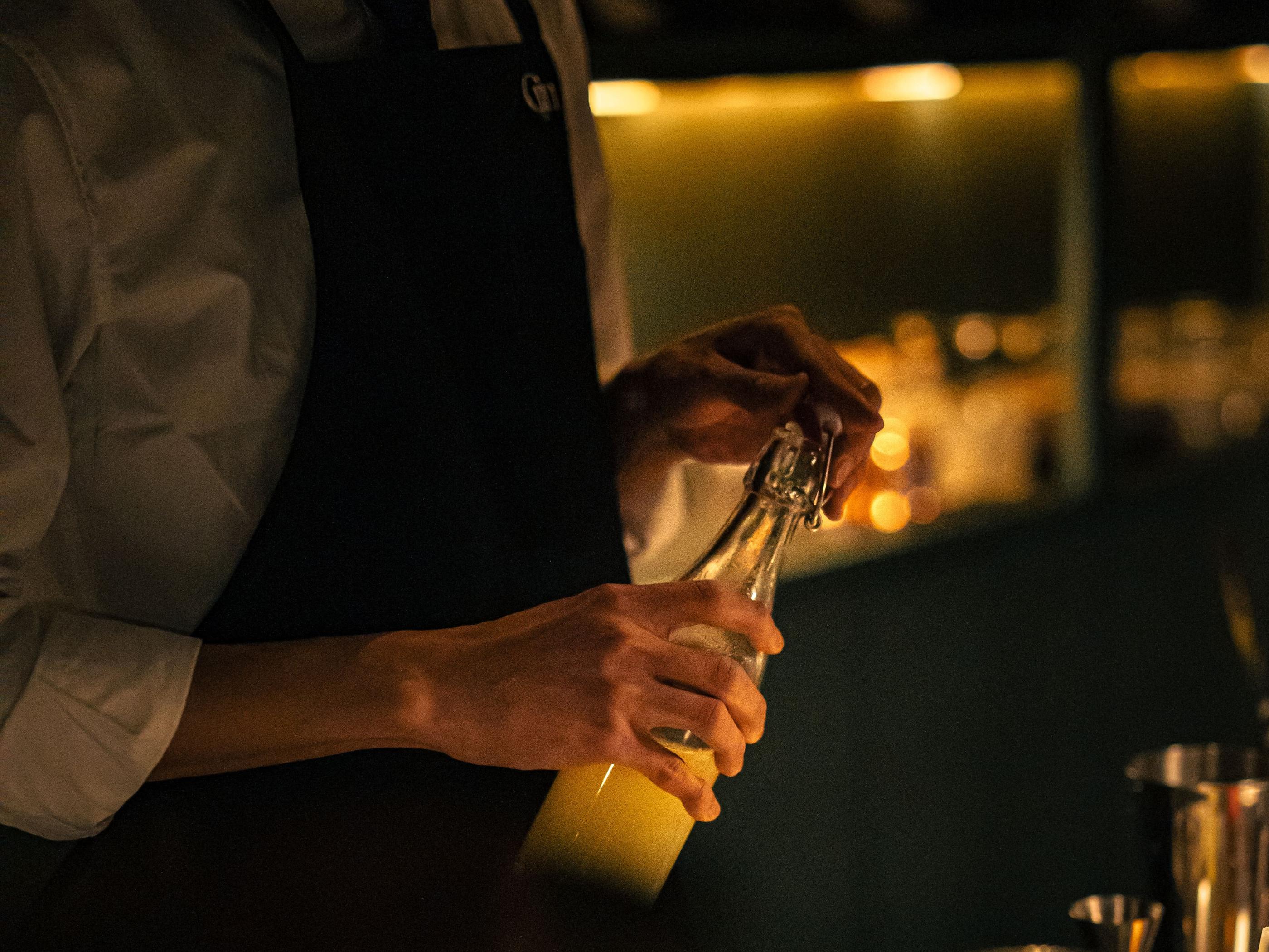 Es macht Spaß, Cocktails aus nächster Nähe an dieser offenen Bar zuzusehen.
