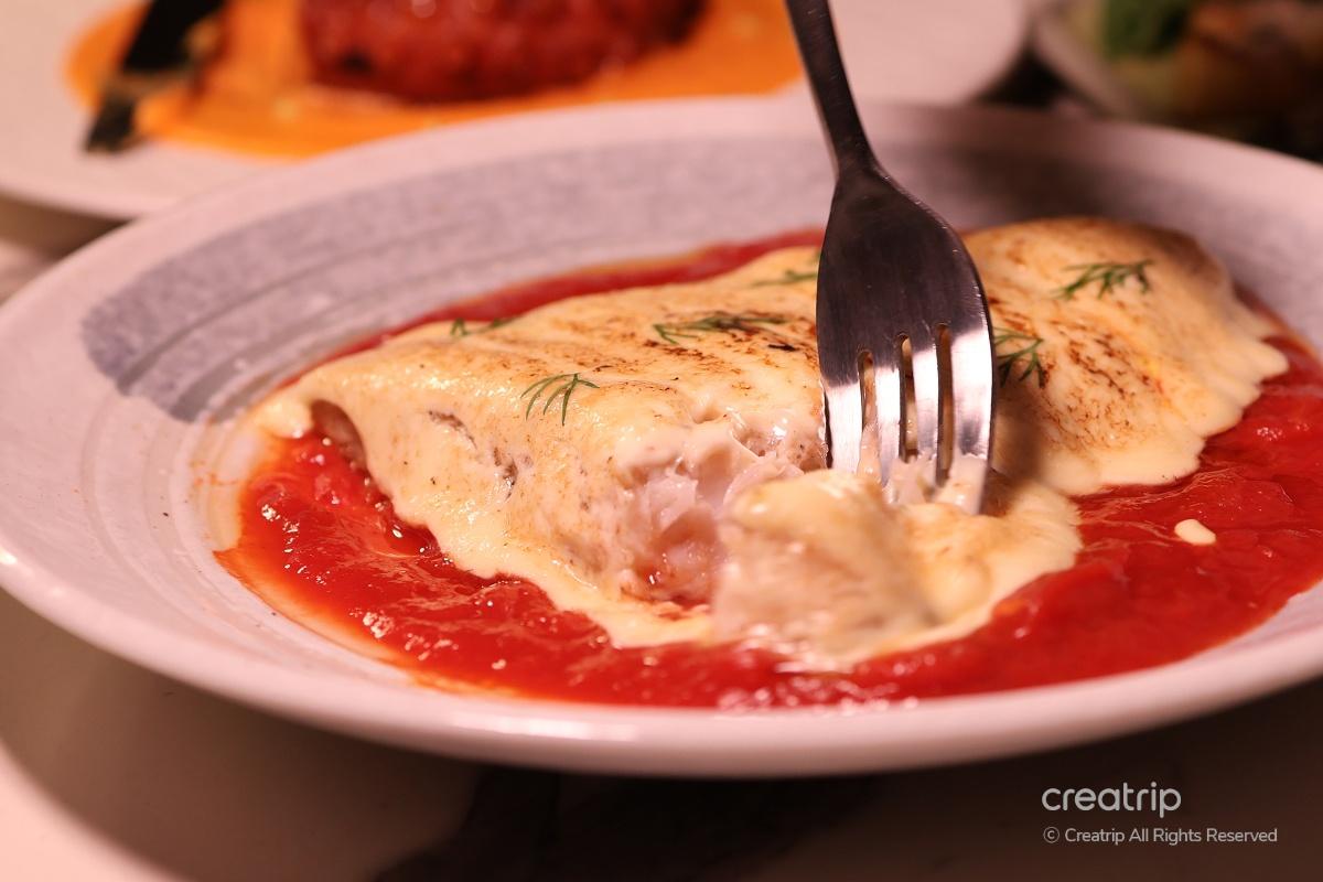 Der zarte weiße Fisch mit reichhaltiger Tomatensauce zergeht auf der Zunge und passt perfekt zur würzigen und leicht salzigen Sauce.