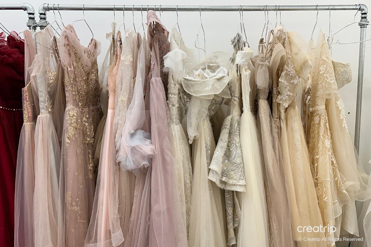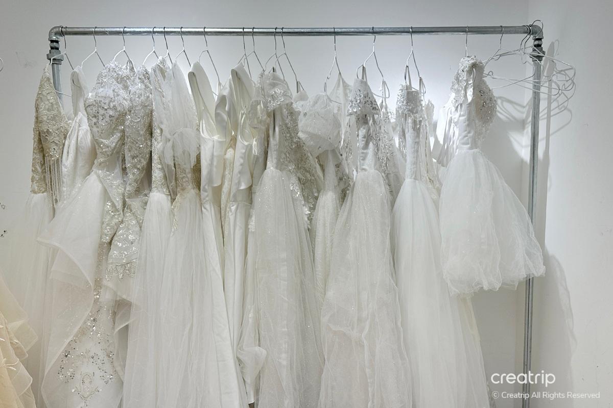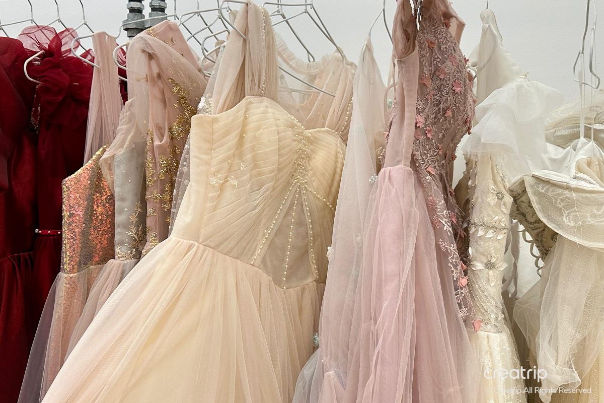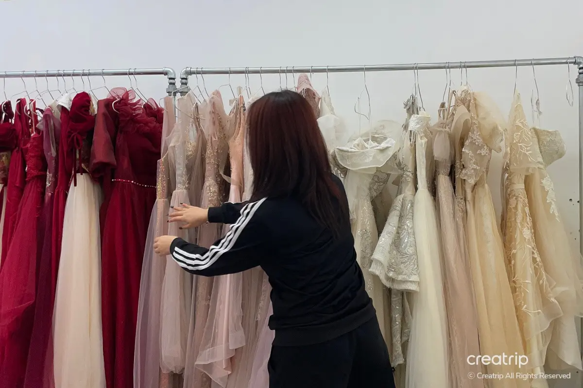 Nachdem Sie ein Kleid ausgewählt haben, entfernen Sie Ihre obere Unterwäsche und ziehen Sie das Kleid zu, dann rufen Sie ein Mitglied des Personals. Im Kleid befindet sich eine eingebaute Kappe, sodass Sie die obere Unterwäsche ausziehen können. Wenn Sie sich unwohl fühlen, können Sie die obere Unterwäsche anbehalten und fortfahren.Das Personal wird den Knoten des Kleides für Sie binden und wenn das Kleid groß ist, verwenden Sie eine Klammer, um es zu halten. Ein Umtausch ist einmal möglich, und wenn Sie einen zusätzlichen Umtausch wünschen, müssen Sie extra bezahlen.
