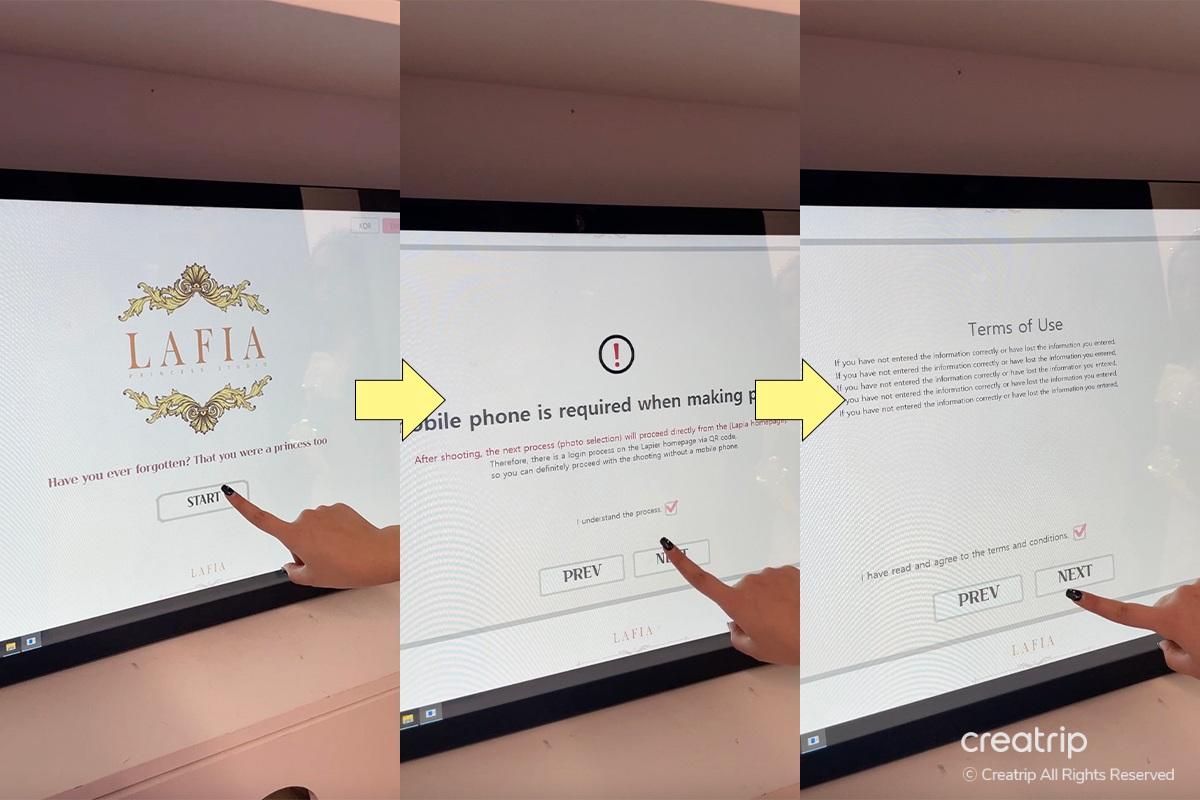 Überprüfen Sie Ihre Reservierungsdetails und die Personen, die zur gleichen Zeit Reservierungen vorgenommen haben, warteten zusammen im Wartebereich. Warten während des Betrachtens verschiedener Prinzessinnenfotos anderer Leute. Das Betrachten der Fotos machte mich noch aufgeregter. Auch das Lied, das während des Wartens spielt, lässt mich fühlen, als wäre ich im Princess Theme Park.