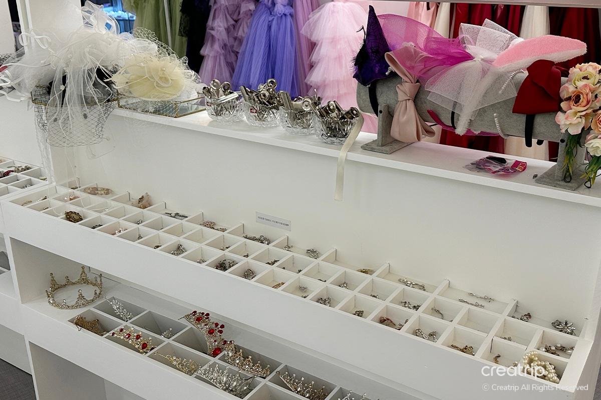Nach dem Umziehen ist es Zeit, Accessoires auszuwählen, die zum Kleid passen, von einer prächtigen Krone bis hin zu Halsketten, Armbändern, Ohrringen, Broschen usw. Das Kleid ist so schick, dass die Accessoires ebenfalls schick sein sollten, um das Gesamtbild schön zur Geltung zu bringen.
