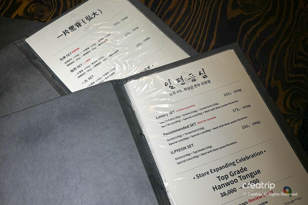 Ilpyeon SET (380g) Ilpyeon Roastbeef (150g) + Chuck Flap Tail (130g) + Spezialstück (100g) + Koreanischer Sojabohnenpasten-Reis | KRW 152.000 |
