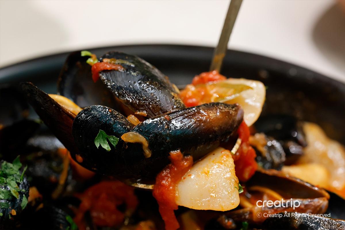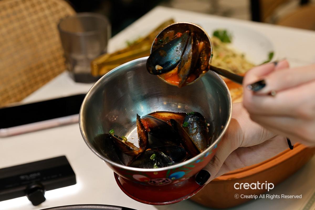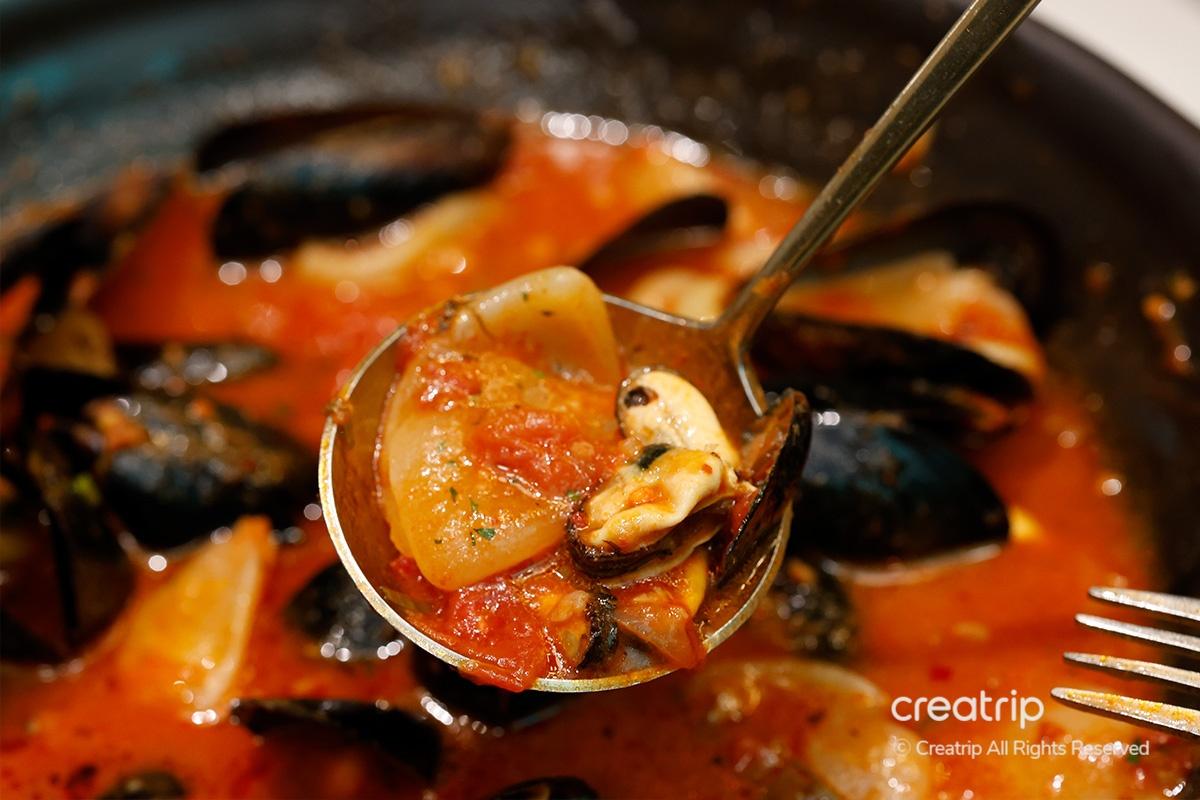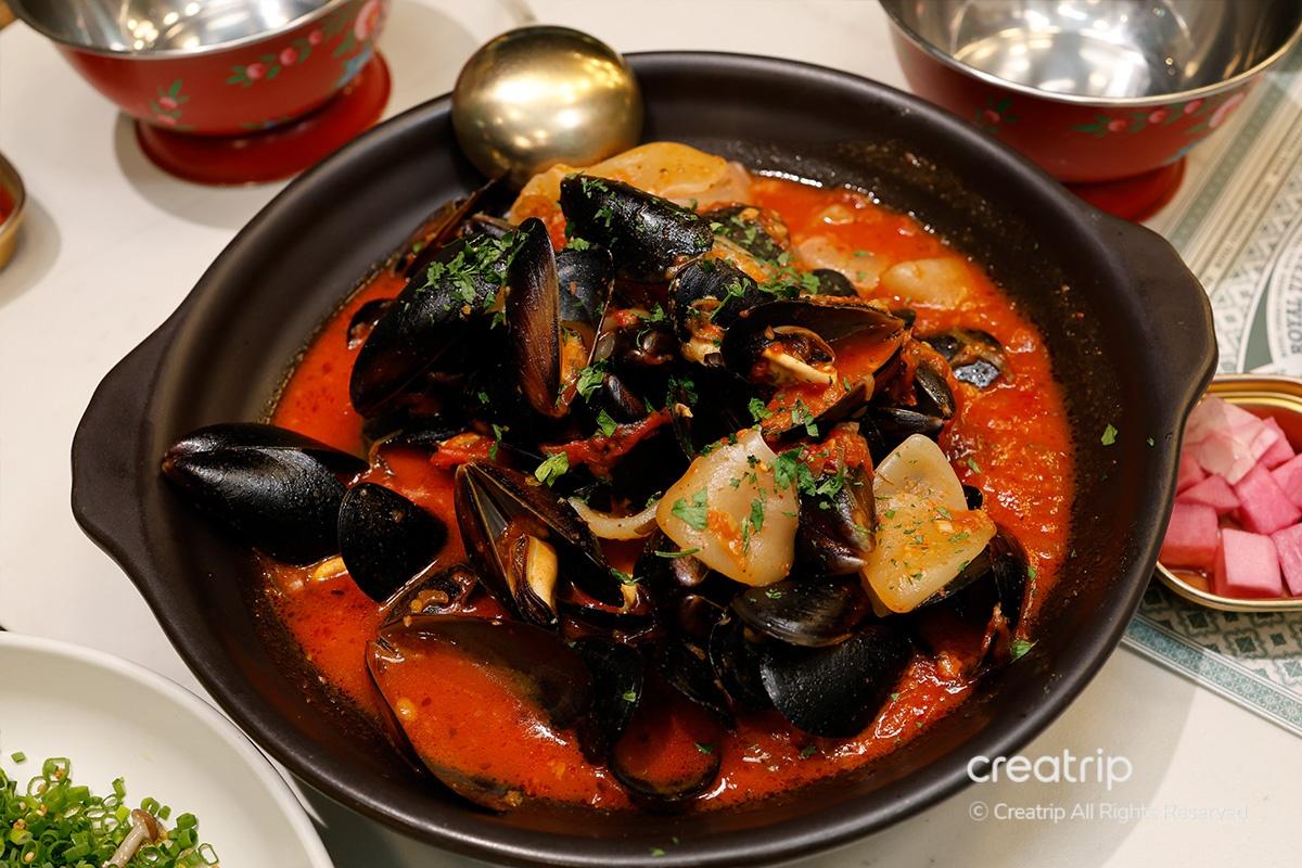 Als nächstes probierte ich den Royal Potato Sujebi Mussel Stew. Es ist ein Gericht mit einem anregenden und tiefen Geschmack, mit einem leicht scharfen Geschmack, der der Tomatensauce hinzugefügt wird. Es ist besonders perfekt für einen regnerischen Tag, an dem man sich nach heißer Suppe sehnt.