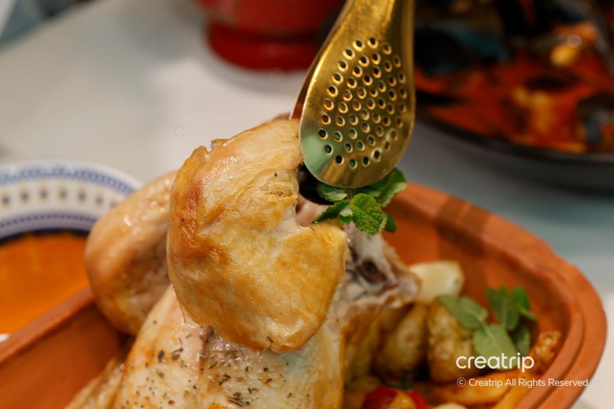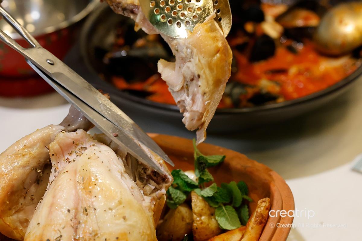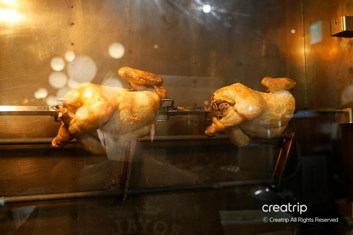 Eine der Hauptgerichte hier ist das Grillhähnchen, das eine gesündere Option mit weniger Fett ist. Man kann es direkt in Echtzeit auf dem Herd grillen sehen.