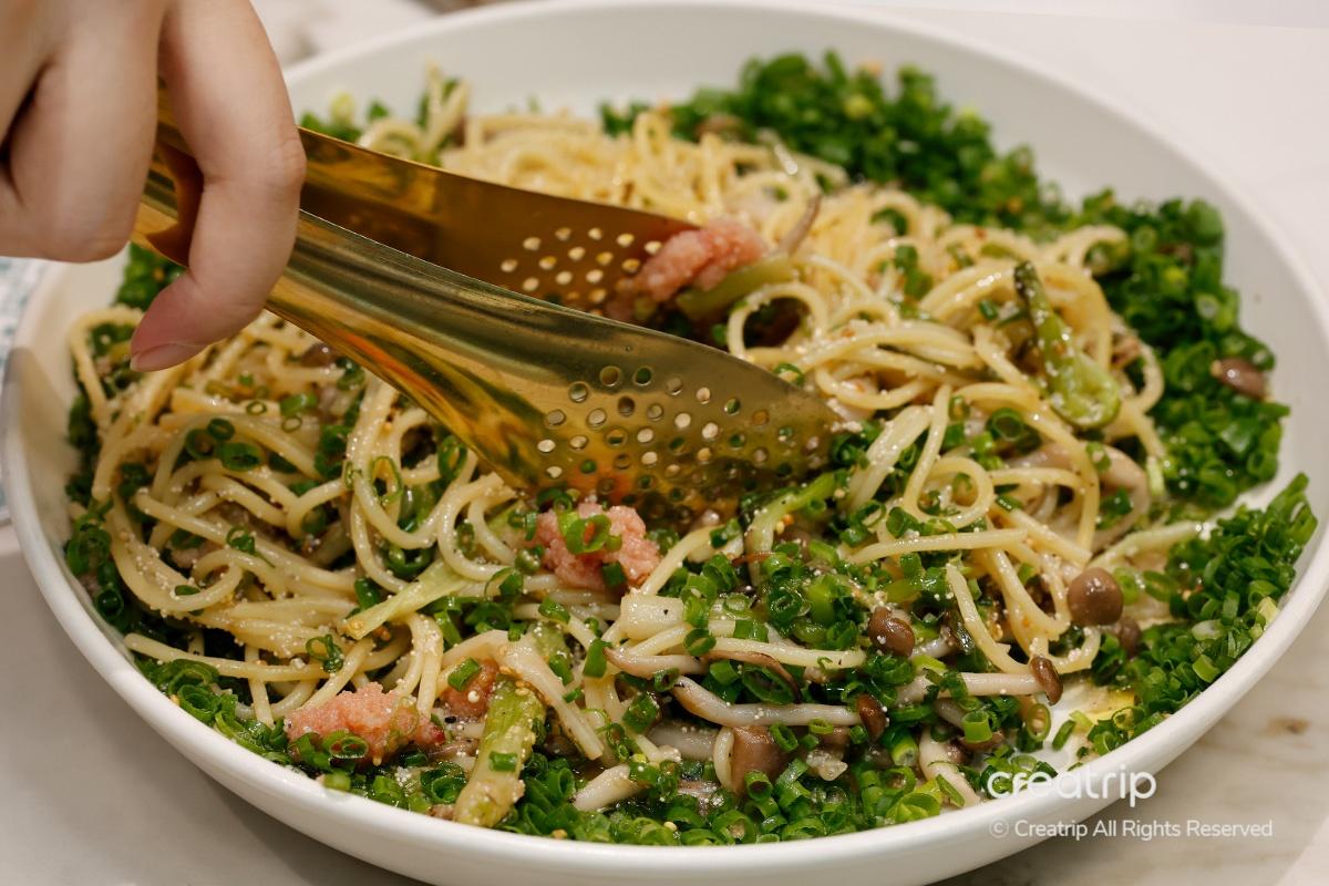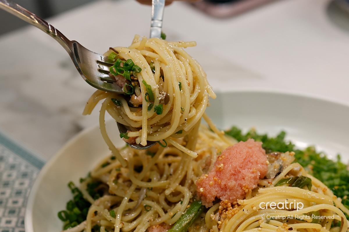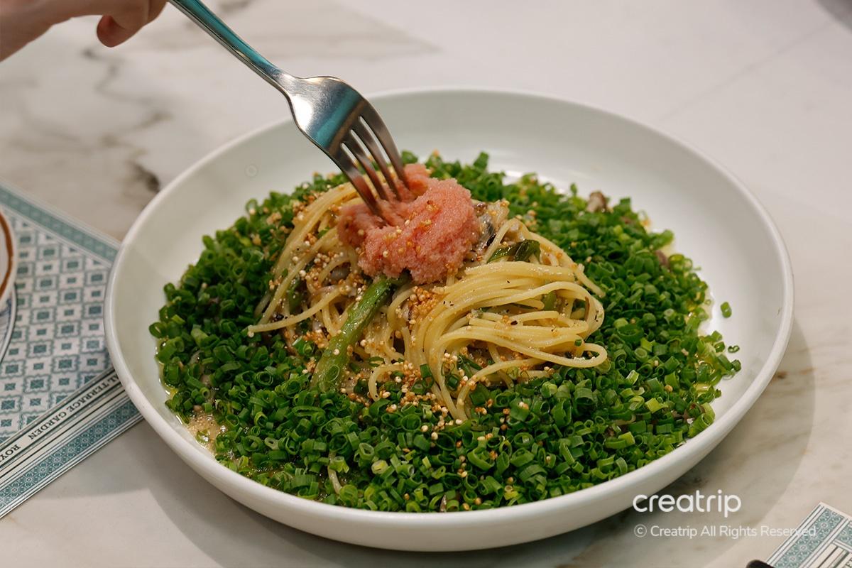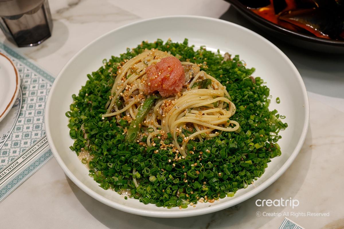 Die Pasta, die vor würzigem Geschmack von Weißfischrogen mit Frühlingszwiebelöl geradezu strotzte, war wirklich exquisit.