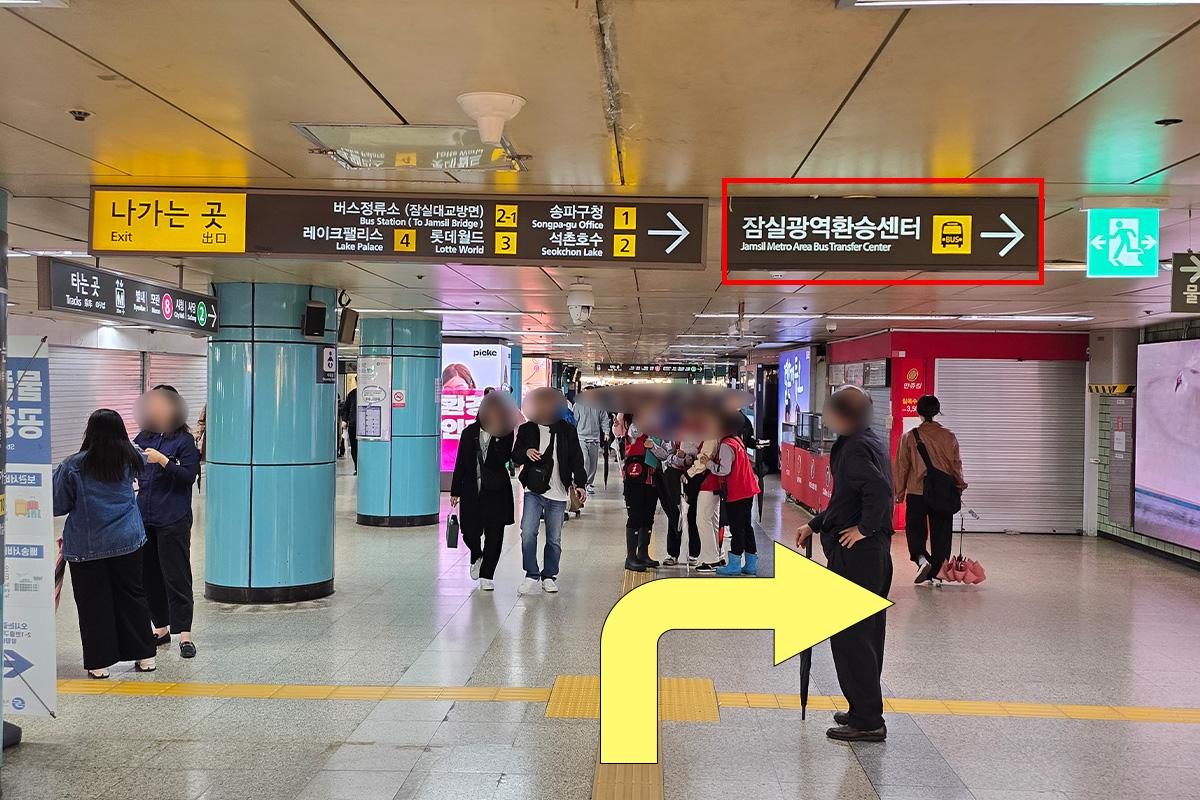Bitte gehen Sie geradeaus zum Jamsil Transfer Center.